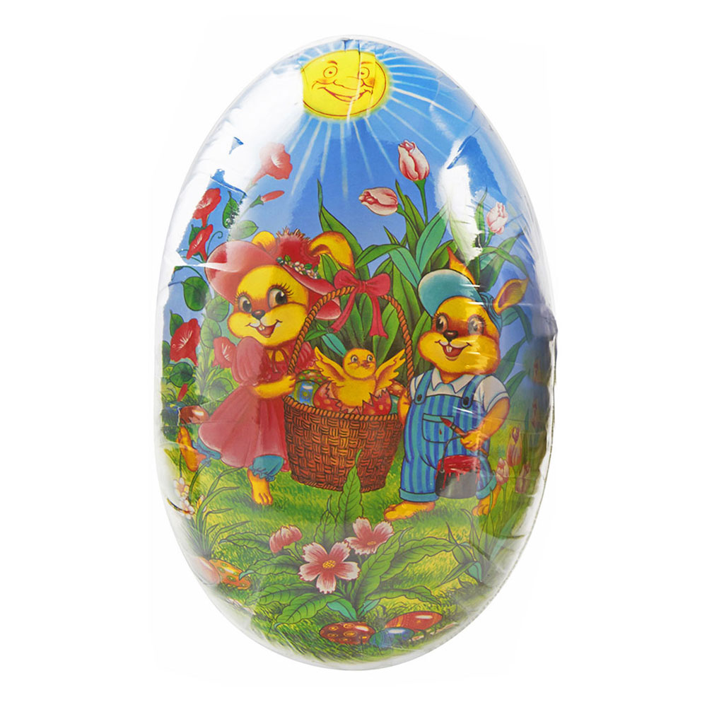 Påsken är här och såklart måste det firas med ett härligt påskägg med traditionellt snyggt påskmotiv med kycklingar och påskharar. Ett mellanstort påskägg på 18 cm utan godis som du själv kan fylla med vad du vill, tomma påskägg med plats för överraskningar är förstås allra bäst så att du får det precis så som du vill. Superfint påskägg som blir ett härligt påsk-pynt och uppskattad påsk-dekoration, en påsk-prydnad för alla som älskar påsken.