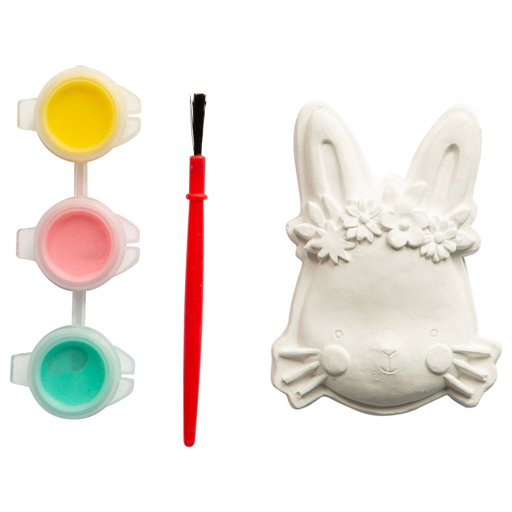 Påskpyssel Kaninmagnet Set omfattar ett påskpyssel set med en magnet i form av en söt kanin samt målarfärger och pensel att måla den med. Magneten är tillverkad i gipsmaterial och är ca 7 x 5 cm stor. Passar barn från 3 år och uppåt.