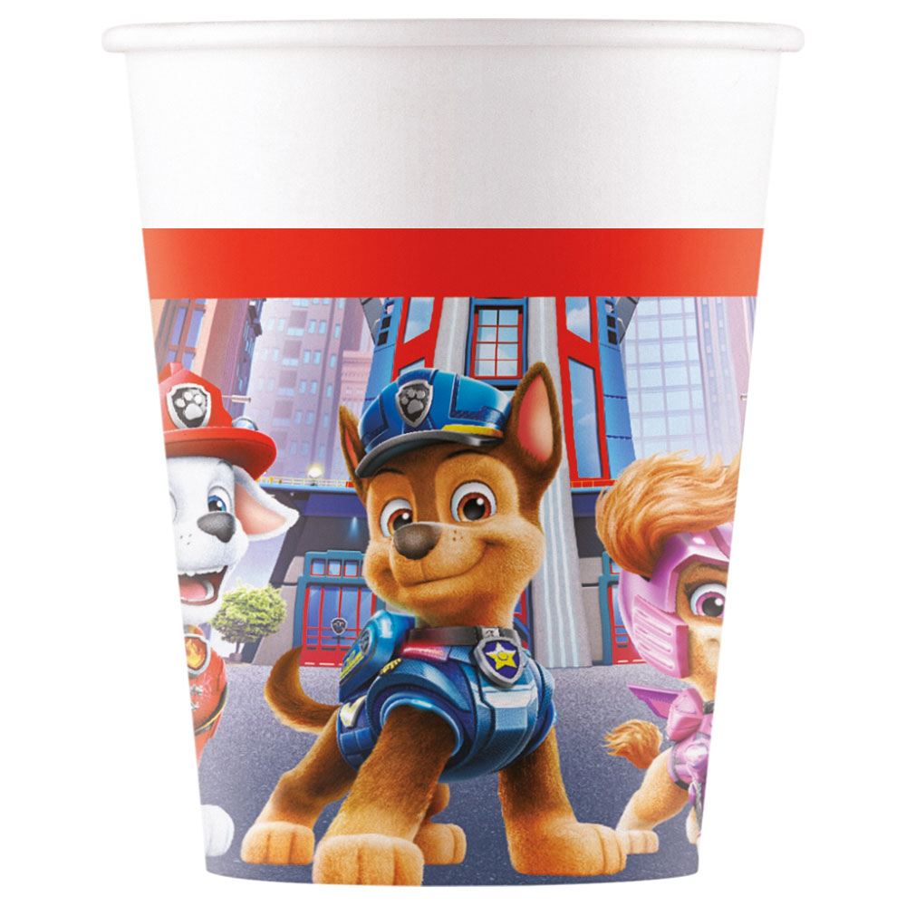 Paw Patrol The Movie Pappmuggar omfattar ett 8-pack pappersmuggar i vitt med Paw Patrol motiv i olika färger med röd kant. Muggarna rymmer ca 20 cl och är ca 9 cm höga.