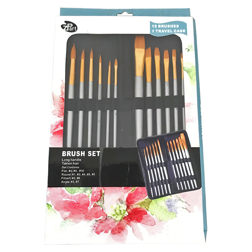 Penselset består av taklon penslar med långa skaft förpackade i en penselväska med dragkedja. Setet innehåller 12 stycken olika penslar. När väskan är hopfälld mäter den 35 centimeter lång och har en bredd på 10,5 centimeter.
