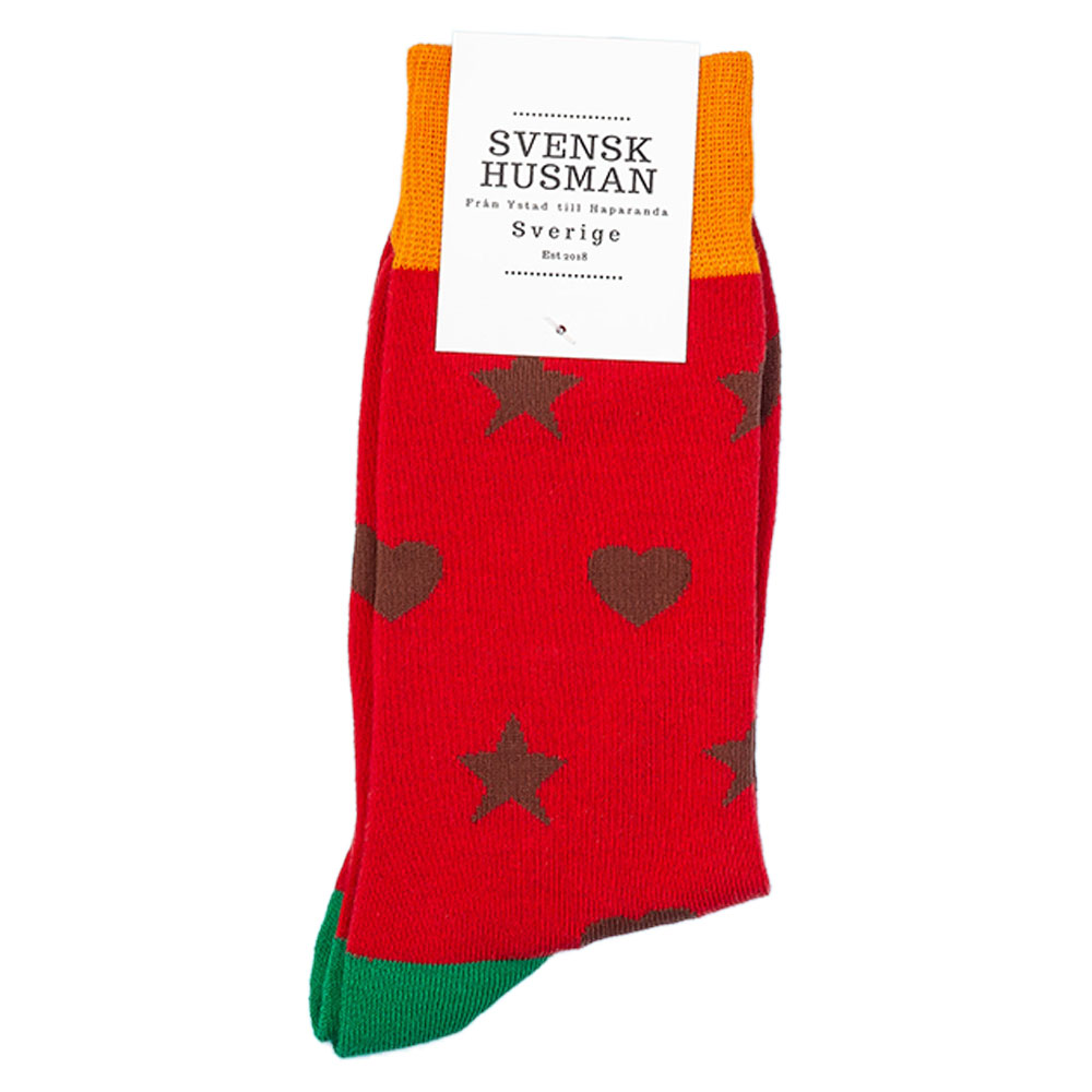Sprid en härlig julstämning vart du än går med dessa skojiga julstrumpor! Roliga strumpor med fina motiv av pepparkakor i form av stjärnor och hjärtan. Utmärkt strumpor att bära till lucia dräkten eller julfest klädseln.