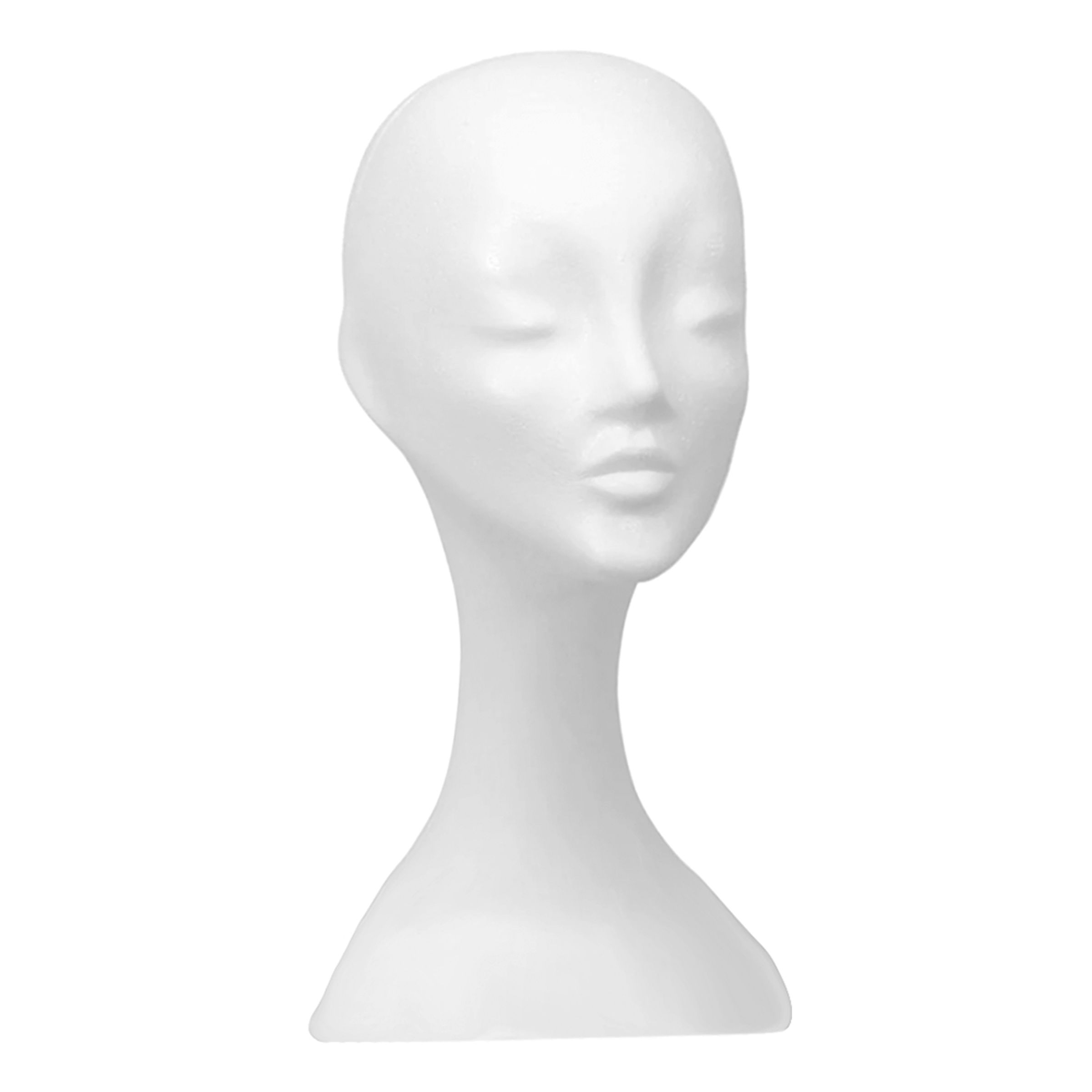 En vit perukstock i frigolit med naturlig huvudstorlek. Perukstockens fot är formad för att den ska kunna stå stadigt även med en peruk på sig. Ett måste för dig som vill förvara dina peruker på ett värdigt sätt.