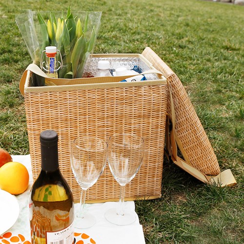 Och du, låt dig inte luras av kylväskans design. Kylväskan ser ut som en flätad korg, inspirerad av en klassisk picknickkorg, men är i själva verket tillverkad av slittålig polyester. Lätt att rengöra med fuktiga trasa och skön att sitta på med vadderat lock. Perfekt till picknick och strand!