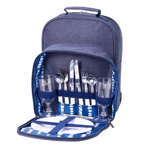 Picknickryggsäck (2 pers), Blå – bestick, tallrikar, glas, Blå