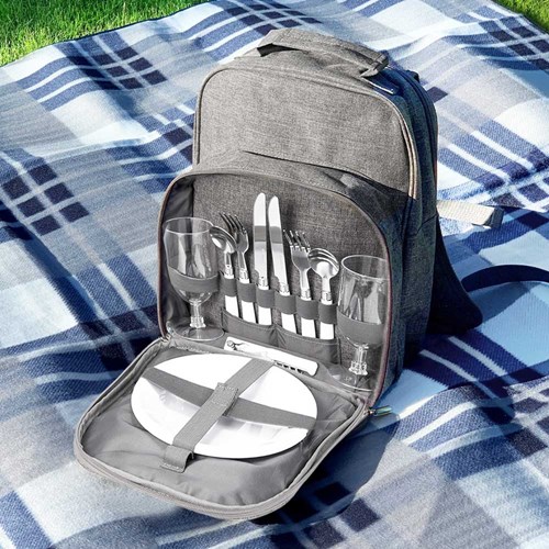 Denna ryggsäck med plats till både kylvaror och tillbehör är ett måste till picknick! Ryggsäcken består av två fack: ett med isolerande aluminium som håller kylvaror kalla och fräscha och ett fack med tallrikar, bestick och plastglas till två personer. Passar utmärkt när du ska bjuda kompisen, din partner eller någon annan du tycker om på en picknickdejt!