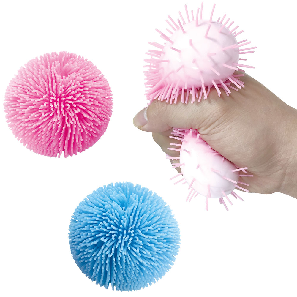Piggig Stressboll omfattar en stretchig stressboll som är täckt i små mjuka piggar. Bollen finns i färgerna rosa eller blå, vilken du får blir en överraskning.