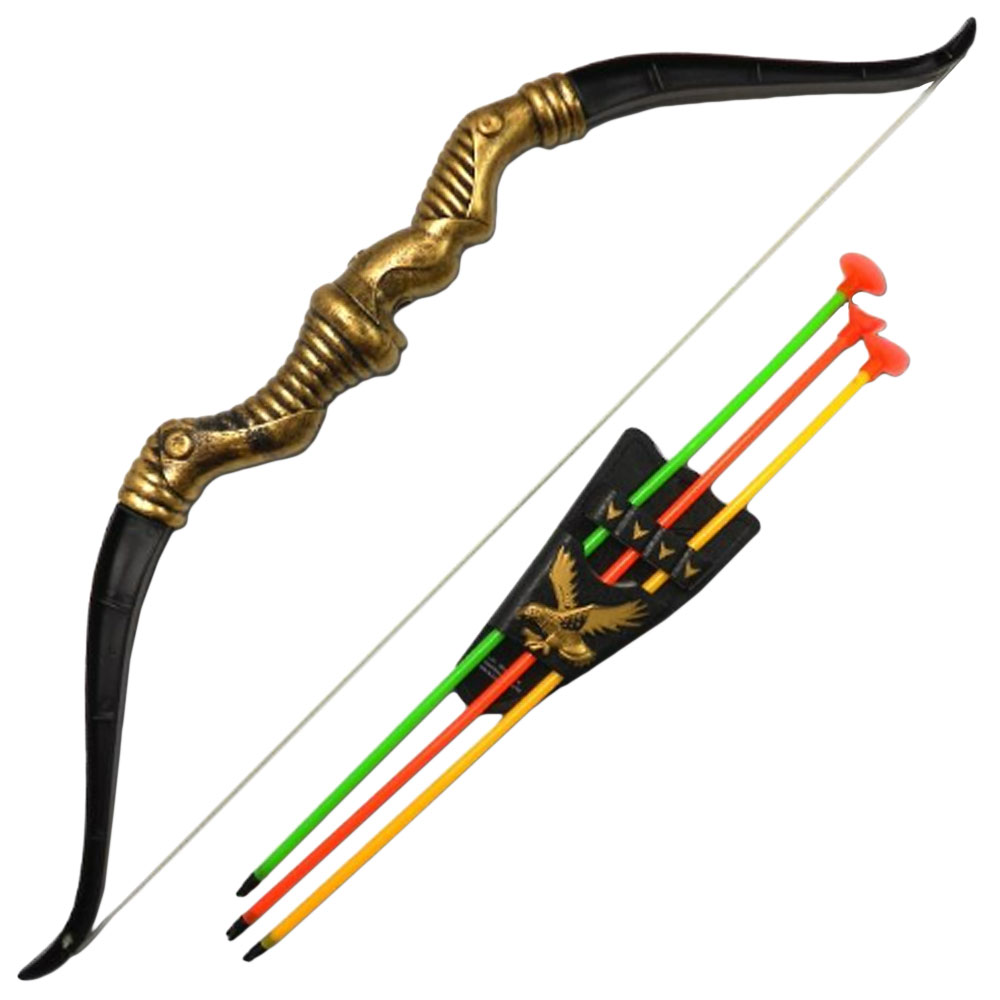 Pilbåge med Pilar Target Game omfattar en pilbåge i plast i svart och guld samt tre pilar i plast med sugproppar och en hållare. Förpackningen kommer med en pricktavla som går att klippa ut.