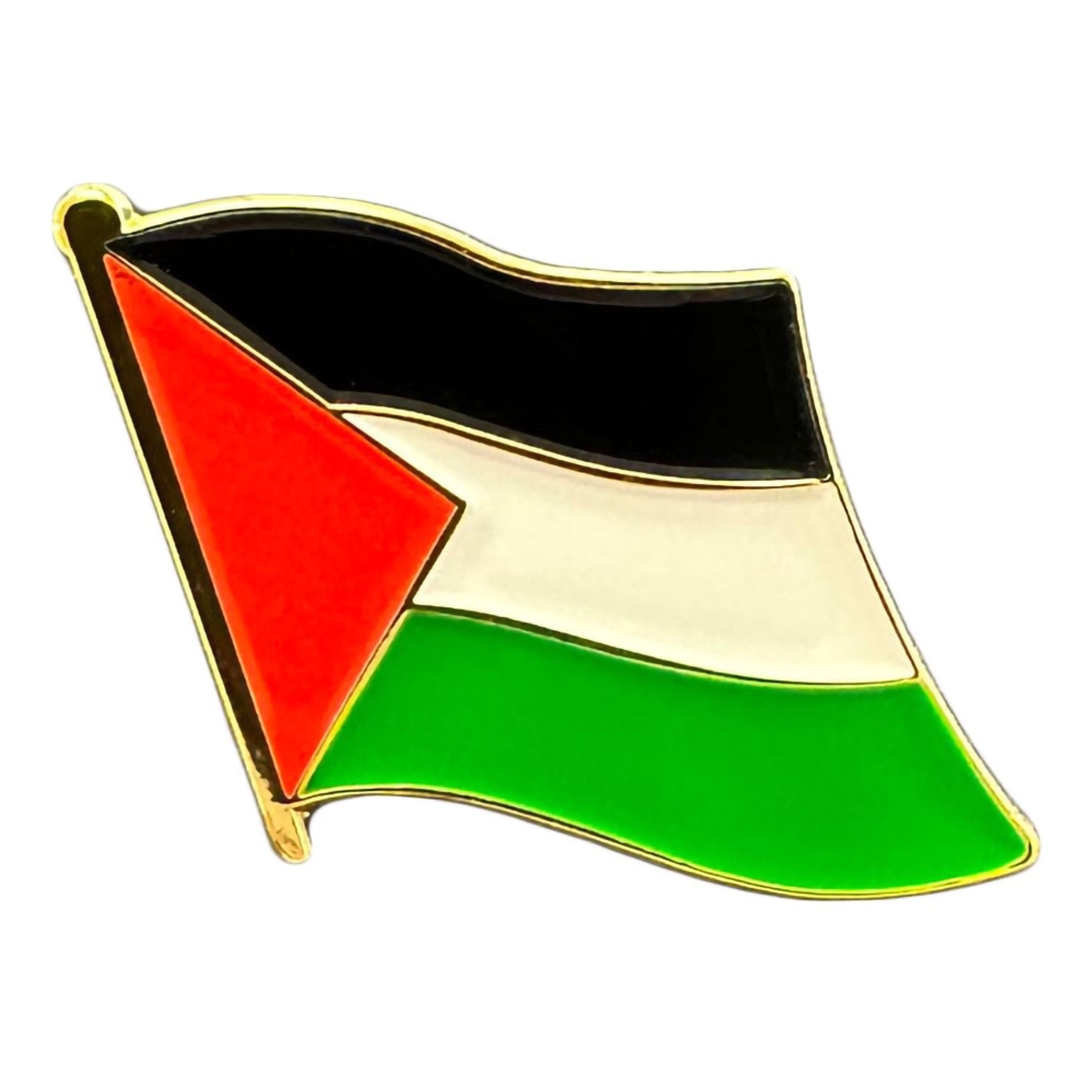 Pin Palestinska Flaggan gör att du enkelt kan dekorera jackan eller tröjan med Palestinska flaggan. Pinsen säljs i enpack och är tillverkad i metall.