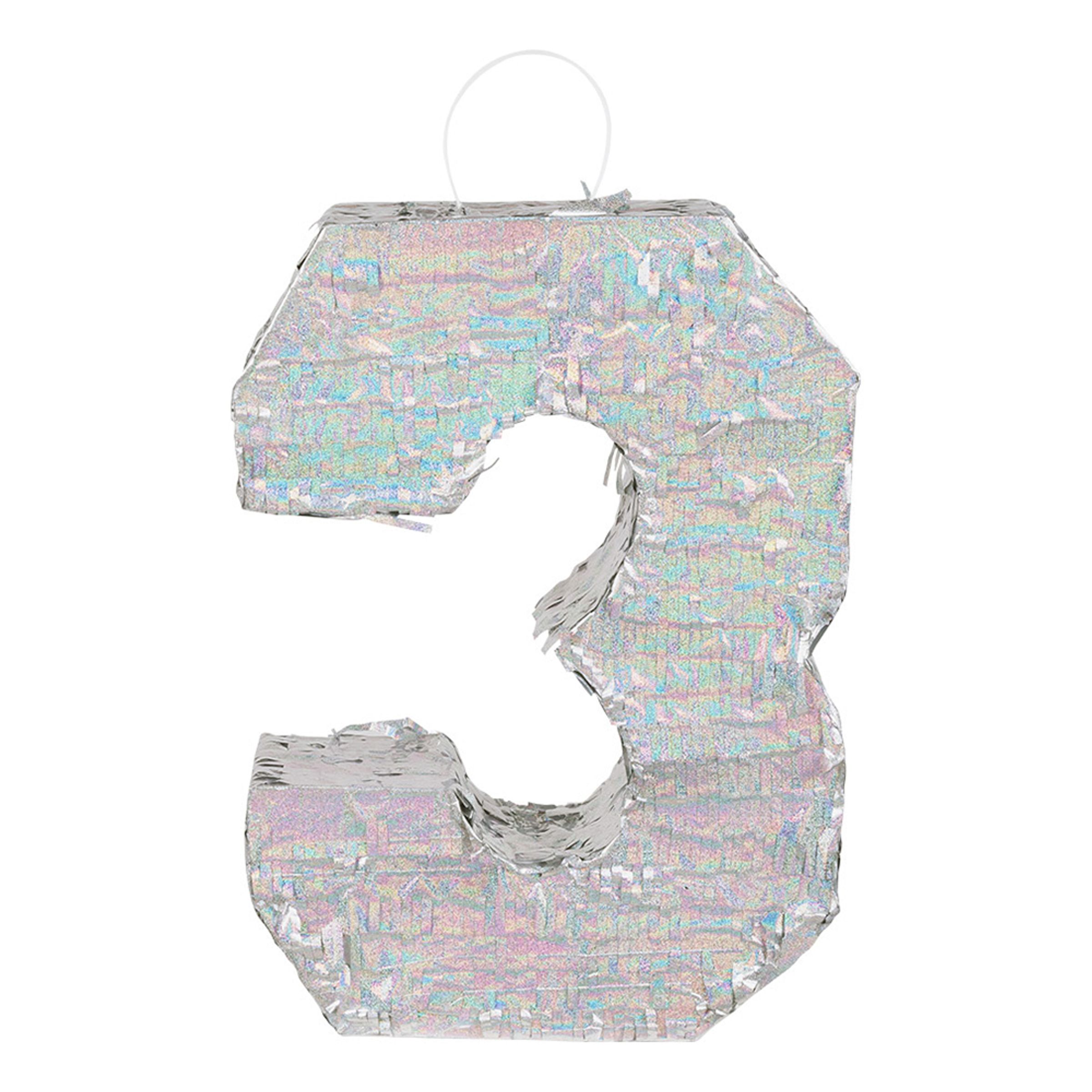 Pinata Siffra Silver Holografisk erbjuds i siffrorna 0 till 9 och är tillverkade av kartong och papper. Varje pinata har en lucka där du kan stoppa i fyllningen samt en liten ögla för upphängning. Observera att fyllning inte ingår (men finns givetvis att hitta i vårt sortiment!).