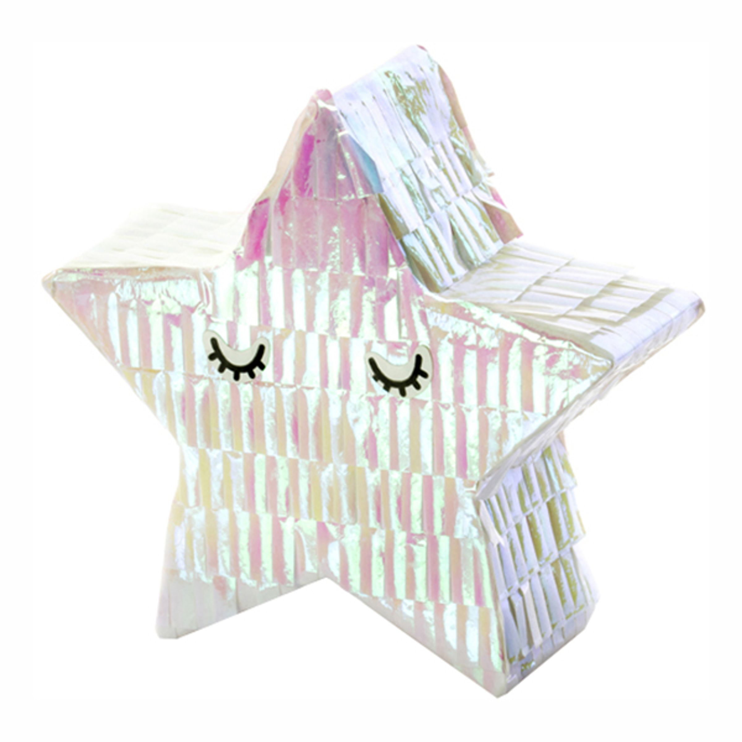 Pinata Stjärna Mini Skimrande innehåller 1 pinata i kartong som är utformad som en stjärna i en skimrande färg. Mäter ca 10.5 x 9.5 x 3.5 cm. Fylls med tex godis (ingår ej).