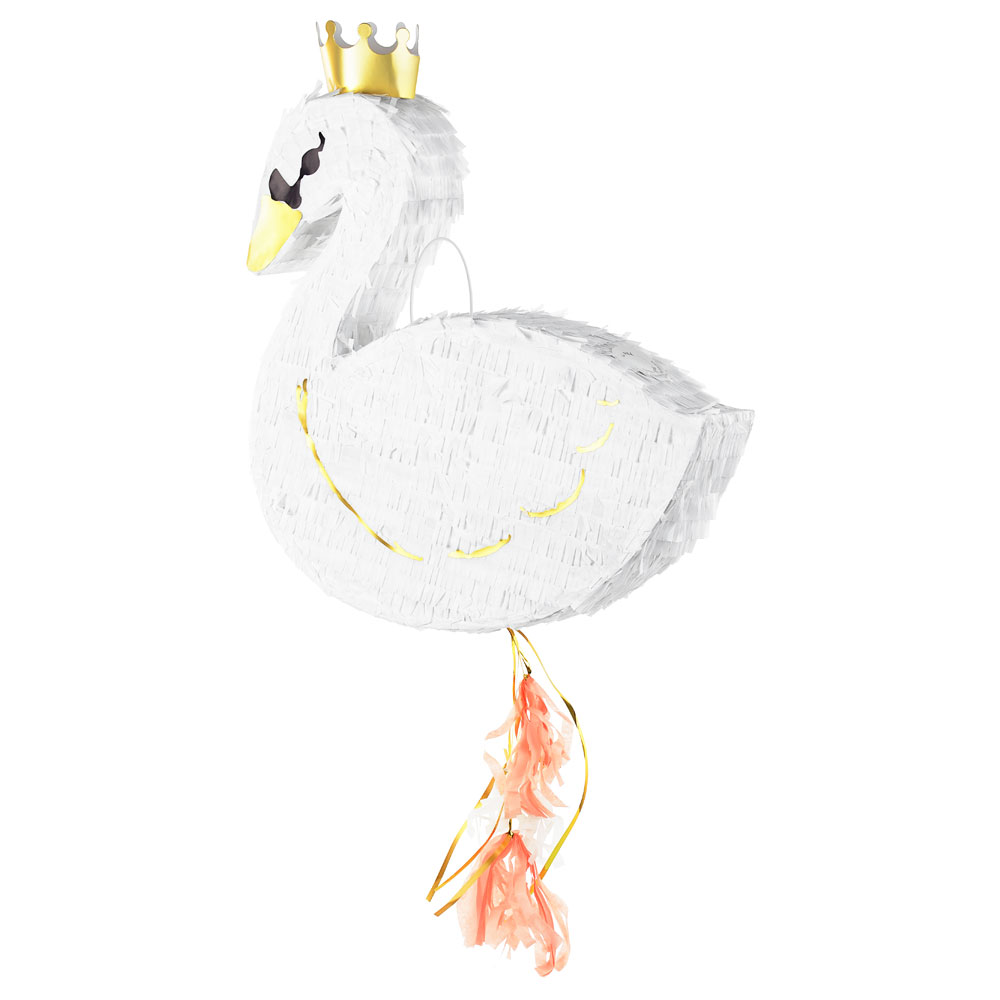 Sagolik pinata i form av en vacker svan att fylla med godis och spännande överraskningar inför barnkalaset. Pinatan bidrar till en superskojig stund för de små gästerna, och den blir dessutom en riktigt stämningshöjande dekoration att dekorera kalaset med. En både rolig och fin pinata som passar alldeles utmärkt till flera olika sorters barnkalas.