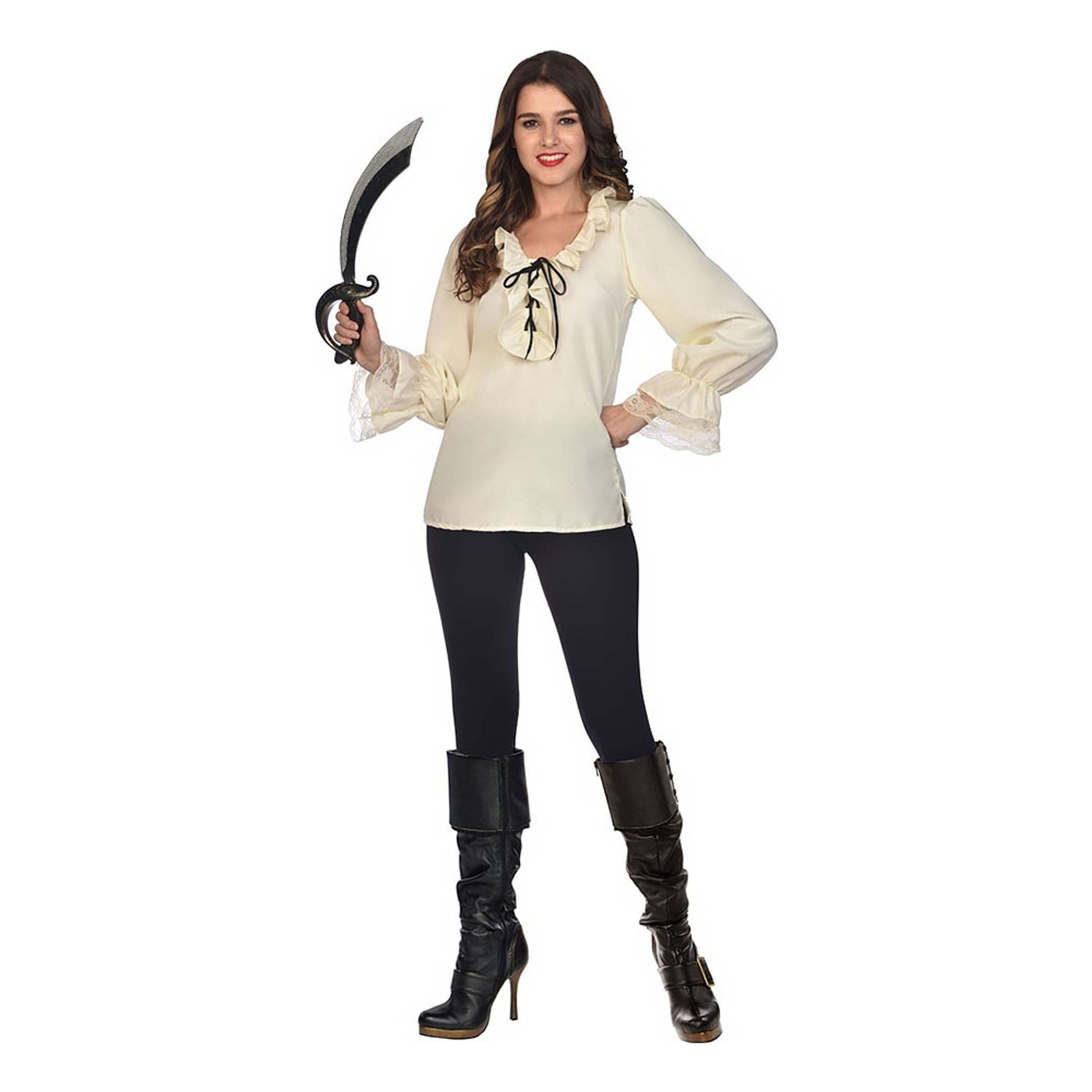 Pirat Skjorta för Dam består av en vit blus och kan enkelt kombineras med svarta byxor och en kappa för att skapa en piratdräkt. Tack vare snörningen och de utsvängda puffärmarna får den sitt autentiska utseende.