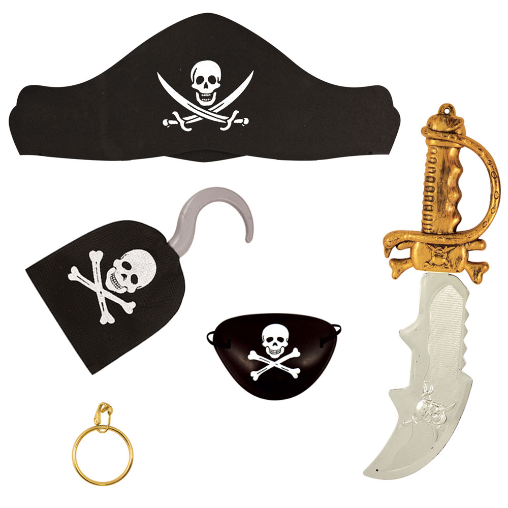 Vare sig du ska ut och segla på de sju haven, gå på maskeradfest eller bara leka en spännande piratlek så kommer dessa häftiga pirattillbehör bli välbehövliga prylar för dig! Med det här tillbehörskitet kan du enkelt klä ut dig med bland annat en tuff pirathatt, ett häftigt svärd och ett guldigt låtsasörhänge som helt klart gör dig till en både snygg och häftig pirat på nolltid. Det här tillbehörskitet är med andra ord så gott som ett måste för alla som vill göra sin pirat utklädnad extra snygg!
