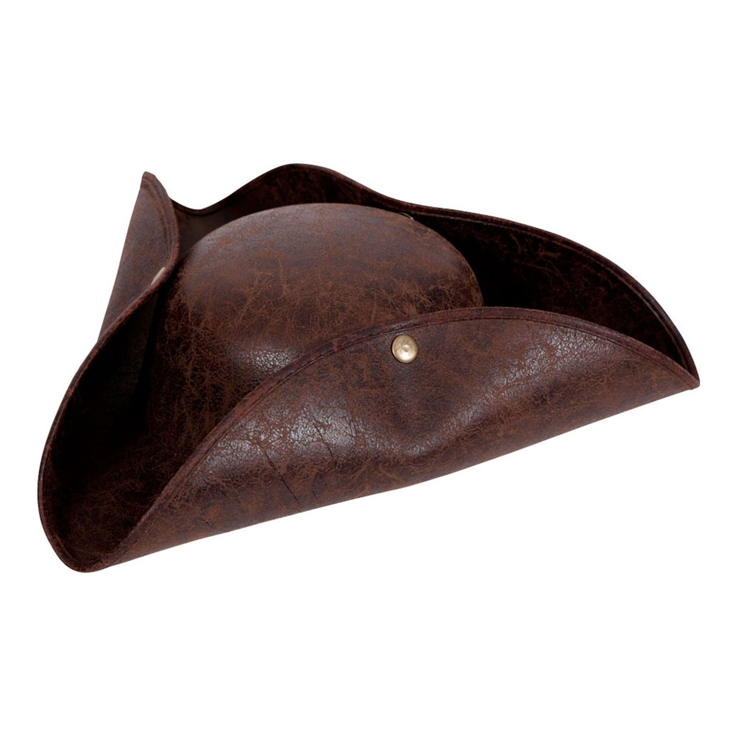 Pirathatt Läderlook Deluxe är trekantsformad i brunspräcklig och autentisk läderlook med matchande tryckknappar på sidorna.