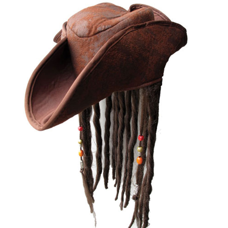 Pirathatt med Peruk inkluderar en brunfärgad pirathatt med fastsatta dreads samt pärlor.