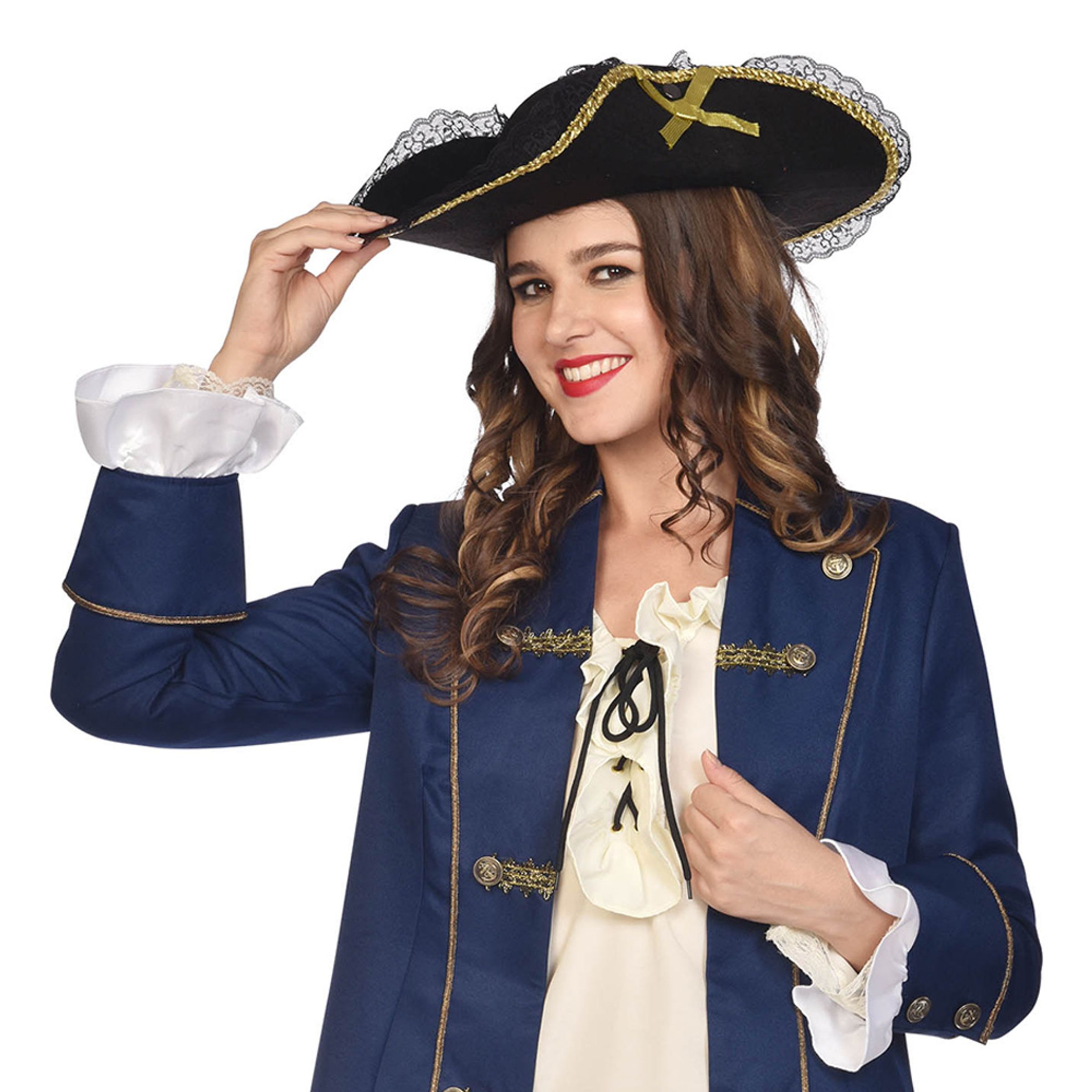 Pirathatt Spets med Guldkant kommer i storleken one size (för vuxna) och är tillverkad av polyester. Ett måste för dig som ska ut på (samtliga) 3 världshav och ställa till med trubbel!
