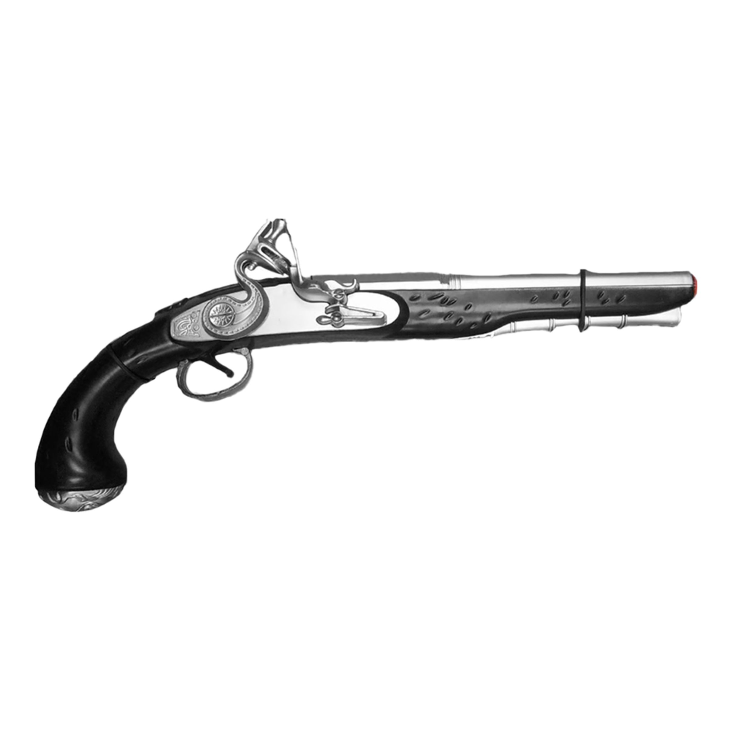 Piratpistol Svart/Silver är tillverkad i plast och har en lång och smal design. Det svarta handtaget är rundat och fortsätter sedan vidare med en silverfärgad yta för att efterlikna metalldelen på en pistol. Komplettera med andra plagg och accessoarer för en komplett look.
