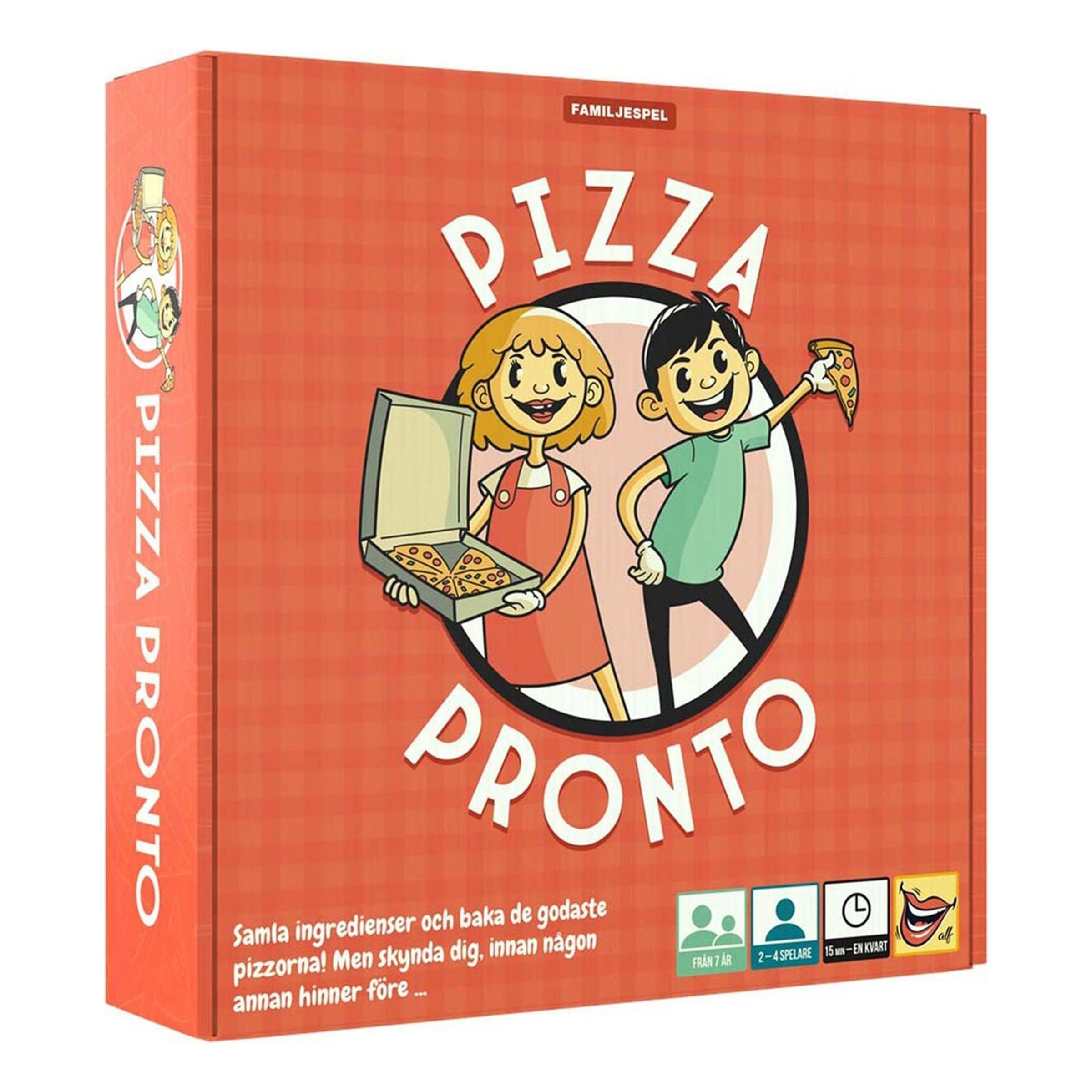 Pizza Pronto Sällskapsspel är ett skojsigt familjespel som går ut på att samla ingredienser för att baka de godaste pizzorna så snabbt som möjligt. Den som snabbast bakar pizzor värda 21 napolitanska lira vinner spelet. Spelet kommer i en passande pizzakartong.