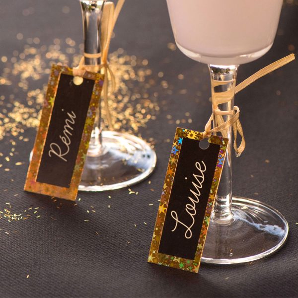 Få till en proffsig bordsplacering med dessa fina placeringskort! Snyggt holografiska kort i guld som gör din bordsplacering riktigt festlig. Skriv gästernas namn på bordsplaceringskorten och duka fram dem tillsammans med dukningen. Riktigt fina små namnskyltar som passar till många olika typer av bordsplacering.