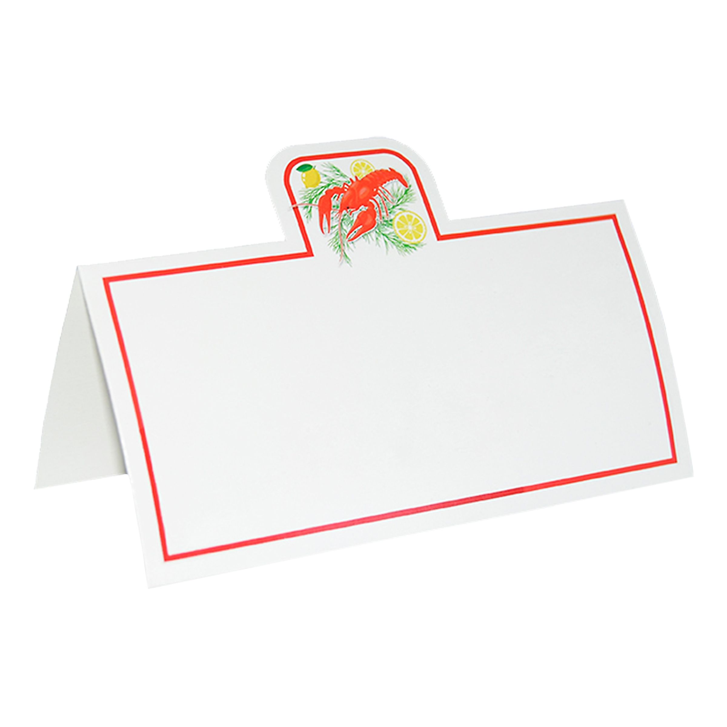 Placeringskort Kräftor innehåller 10 stycken placeringskort i papper som samtliga mäter 10 x 10 cm och pryds av en liten kräfta. Snyggt, smart och personligt!