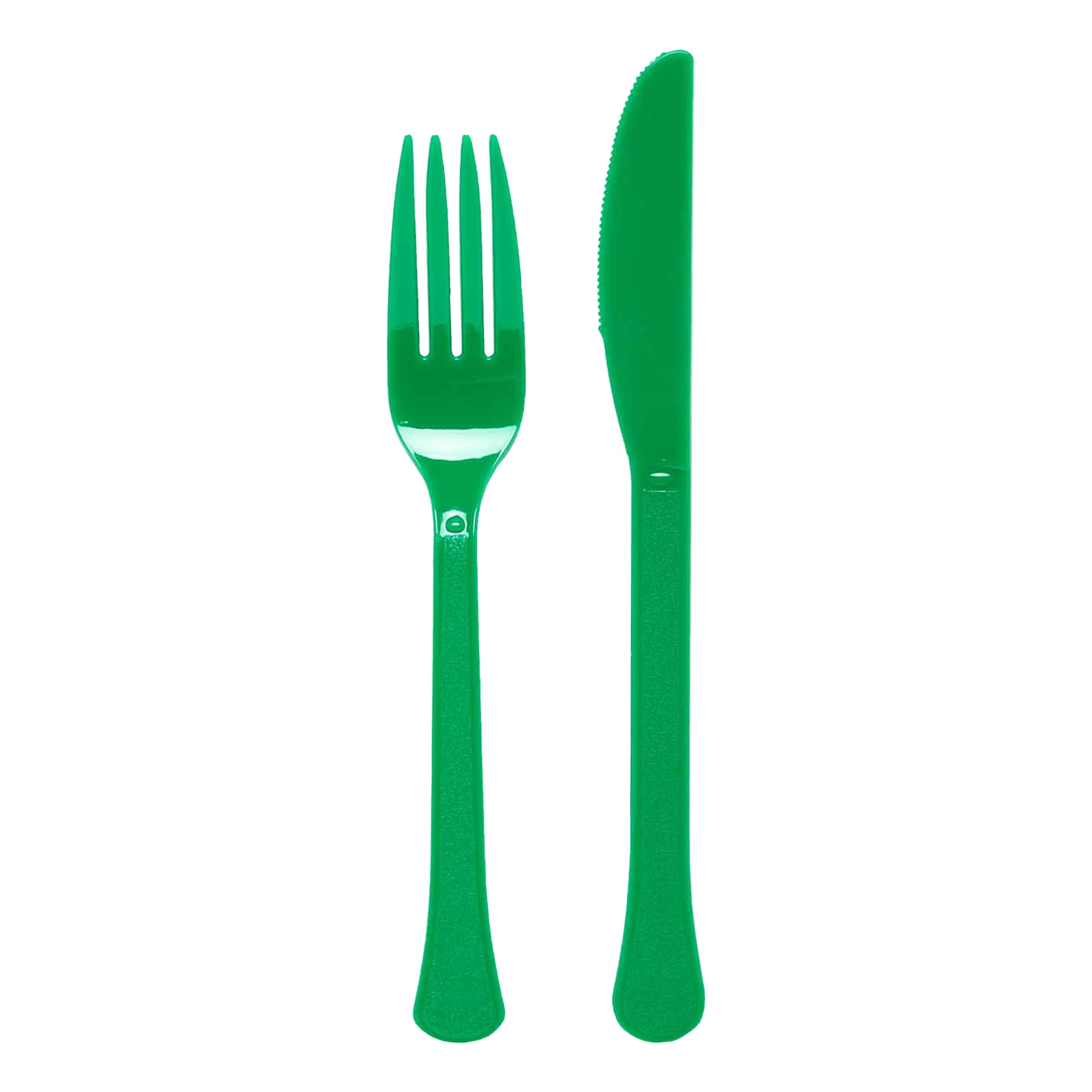 Plastbestick Grön inkluderar tjugofyra smidiga bestick i plast som alla har en härlig ton av grönt. Perfekt på St. Patricks day, picknickar, barnkalas och andra färgglada tillställningar!