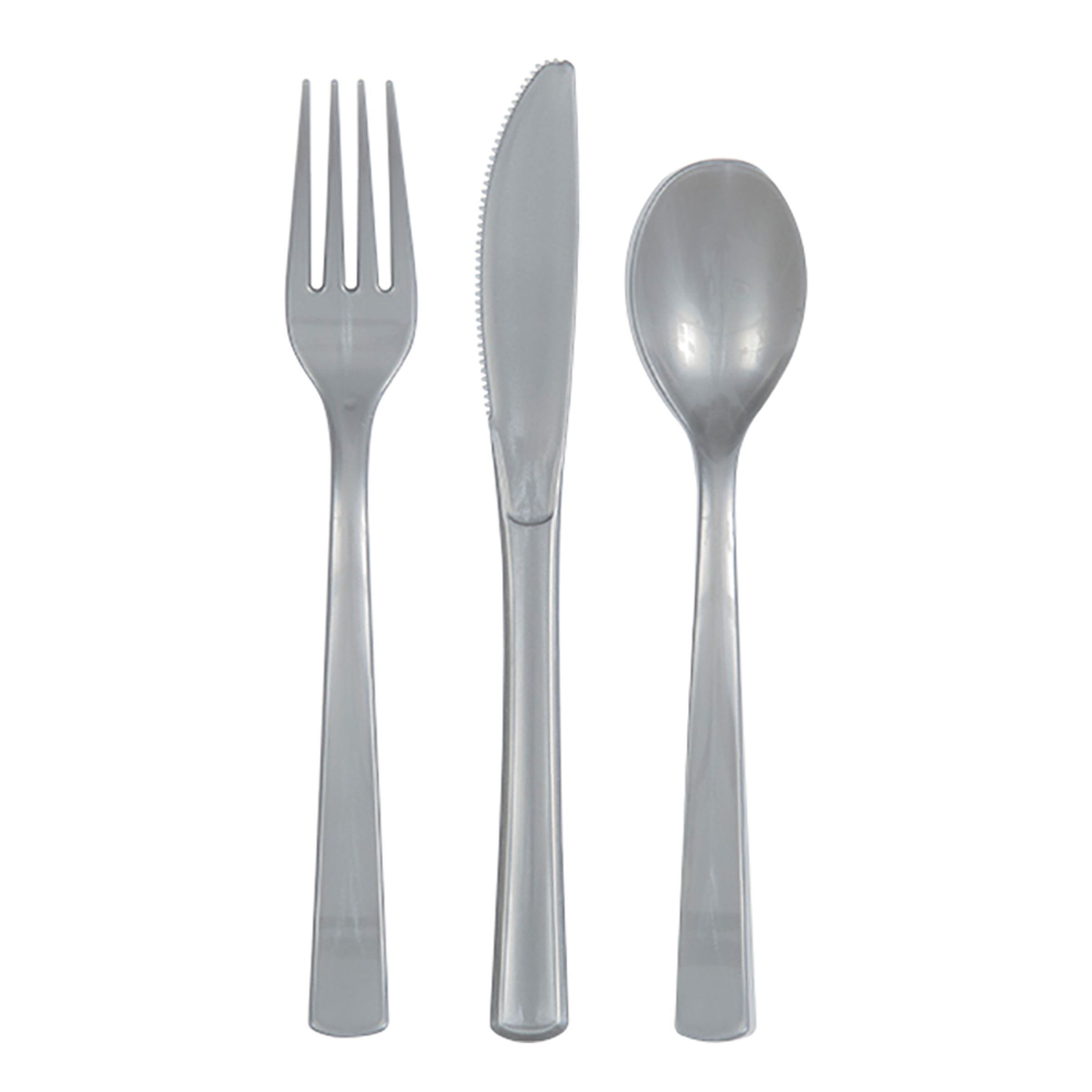 Plastbestick Silver är ett 18-pack med silverfärgade engångsbestick. I förpackningen finns sex knivar, sex gafflar och sex skedar. Besticken är tillverkade i plast.