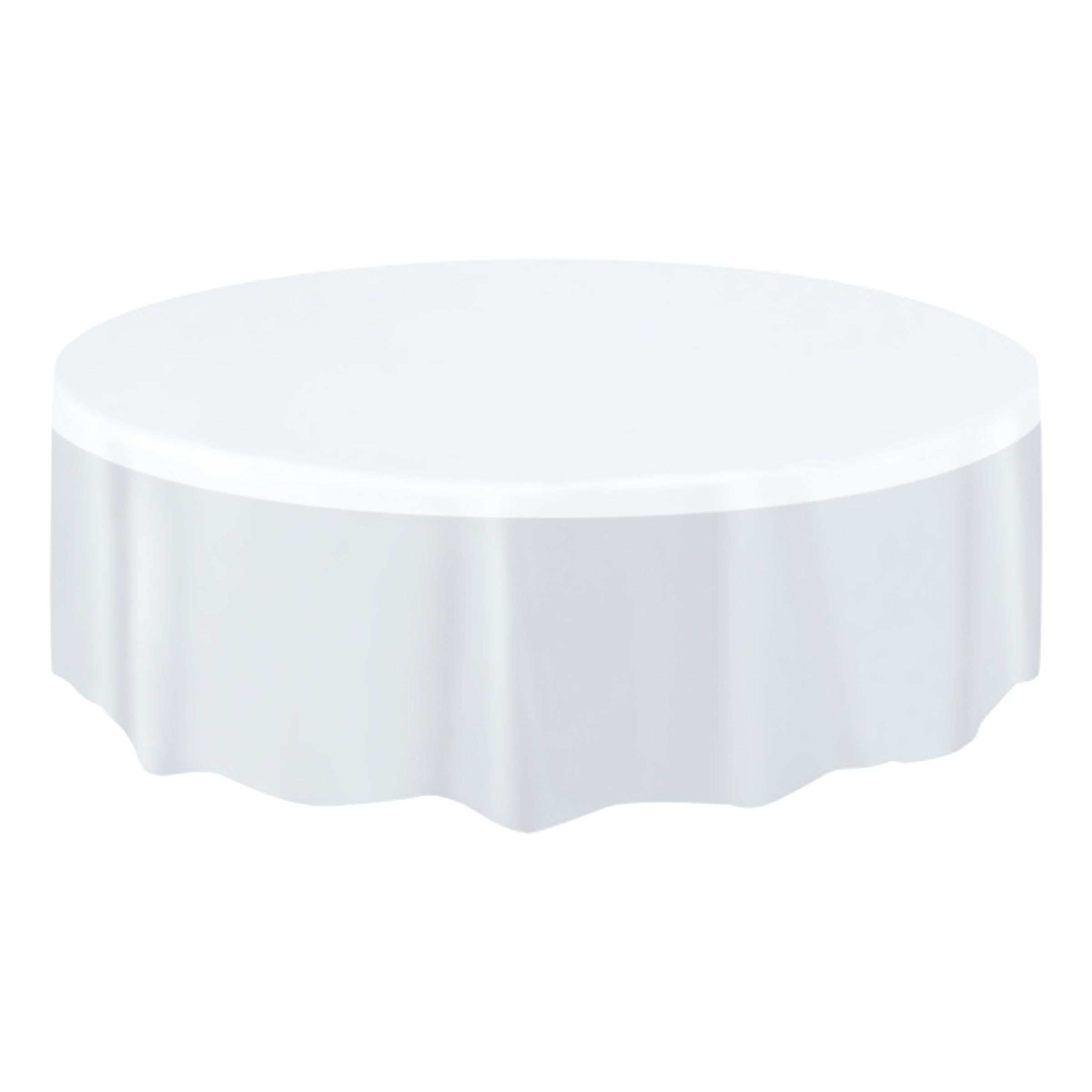 Rund plastduk som mäter 210 cm i diameter och som har en "mjölkig" nyans. Enkel att torka av och kan givetvis användas flera gånger.