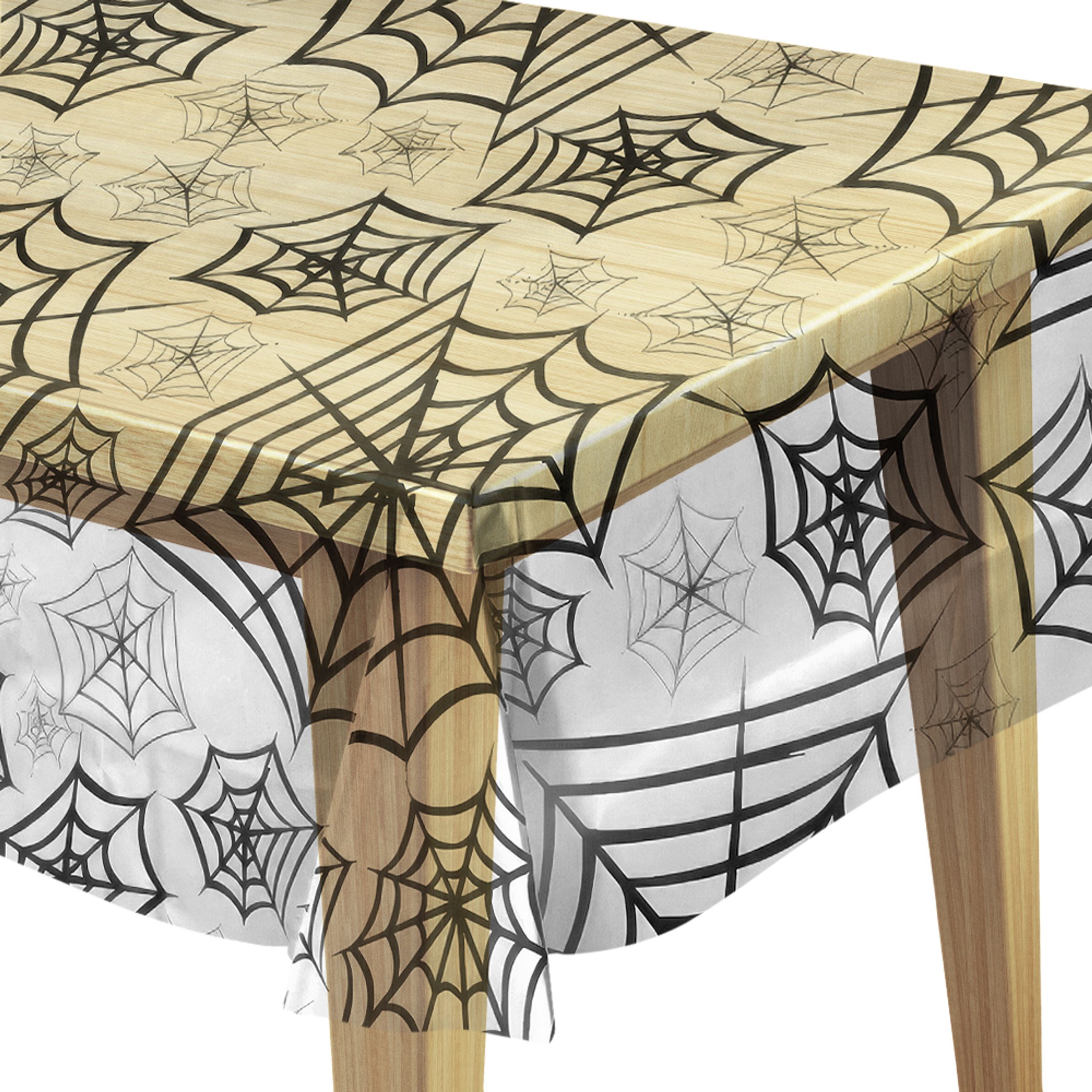 Plastduk Spindelnät är en transparent duk med motiv av svart spindelnät i olika storlekar. Perfekt till halloweendukningen!