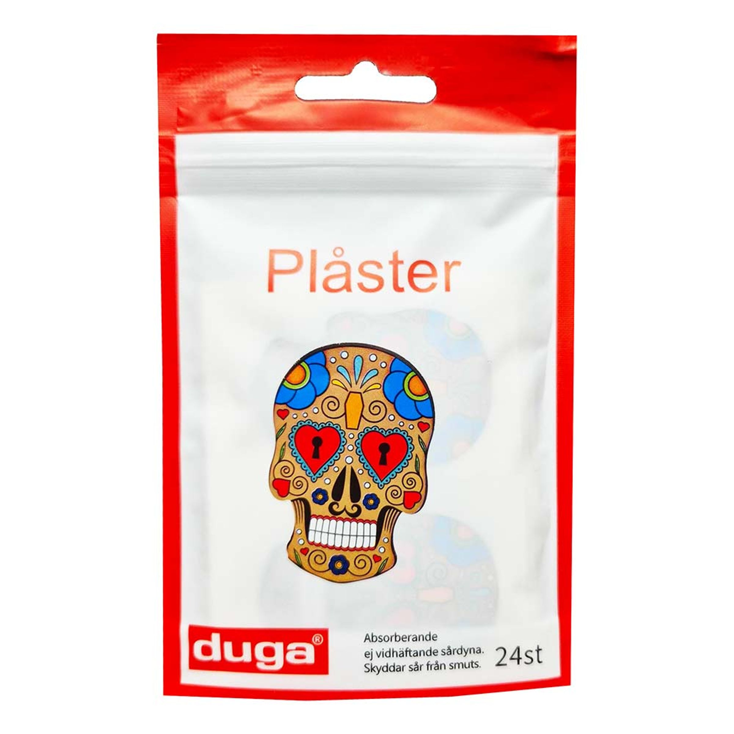 Döskalleformade plåster som gör det hela lite lättare när man ramlat och slagit sig! I en förpackning medföljer totalt 24 stycken döskalleplåster som passar till både vuxna och barn.