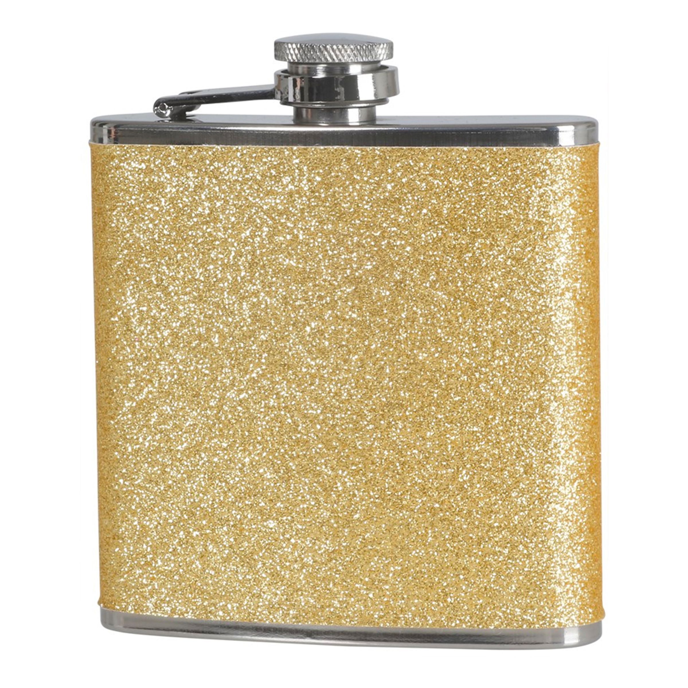 Plunta Guld Glitter är en guldfärgad och glittrig fickplunta med skruvbart lock.