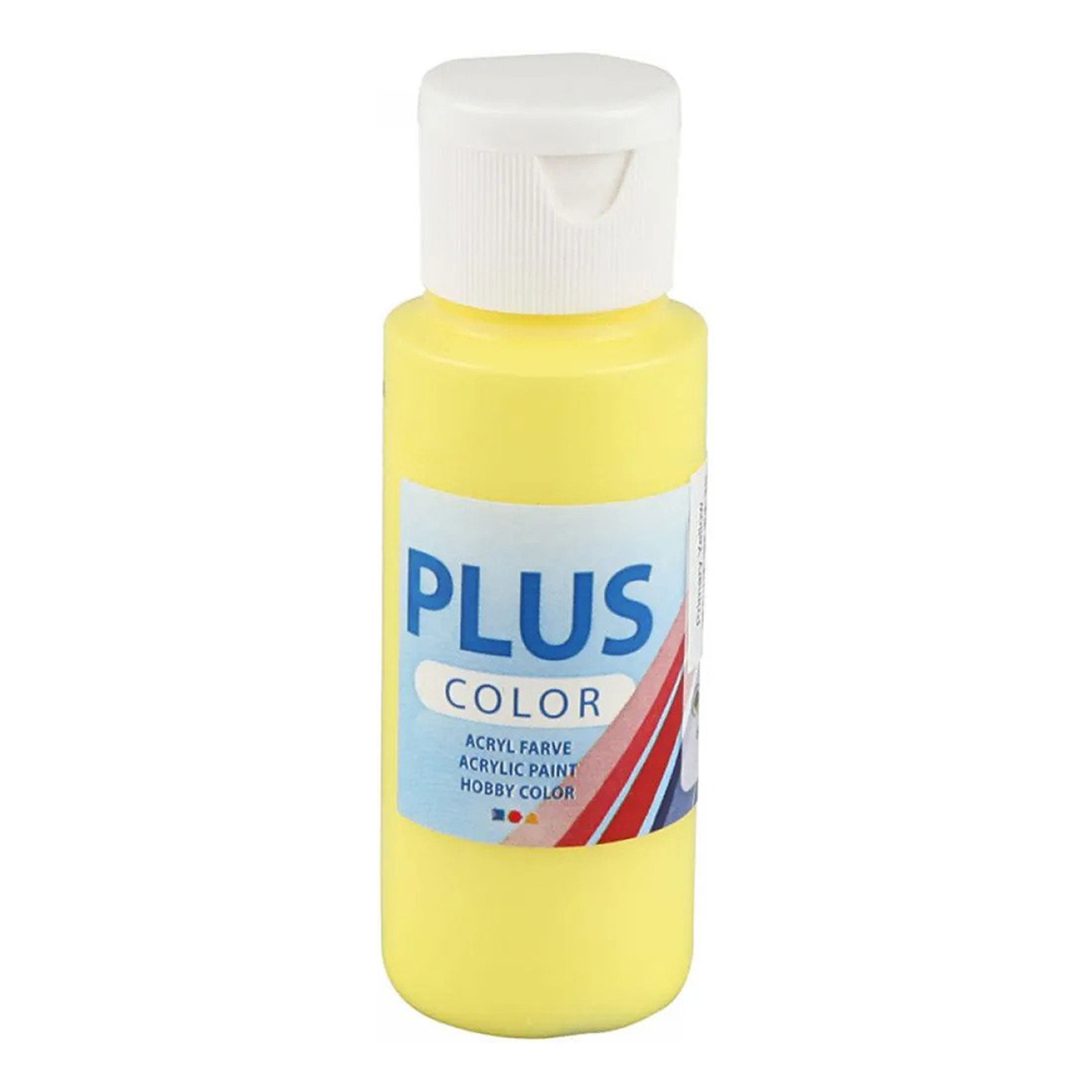 Plus Color Hobbyfärg är en vattenbaserad hobbyfärg med hög pigmentering som ger en täckande yta. Färgen torkar snabbt till en silkesmatt yta och passar perfekt till exempelvis trä, gips eller papp. En flaska innehåller hela 60 ml färg och finns i olika nyanser av färgerna; mattvit, guld, gul, gul, vit, svart, röd, brun, grå, lila och blå.