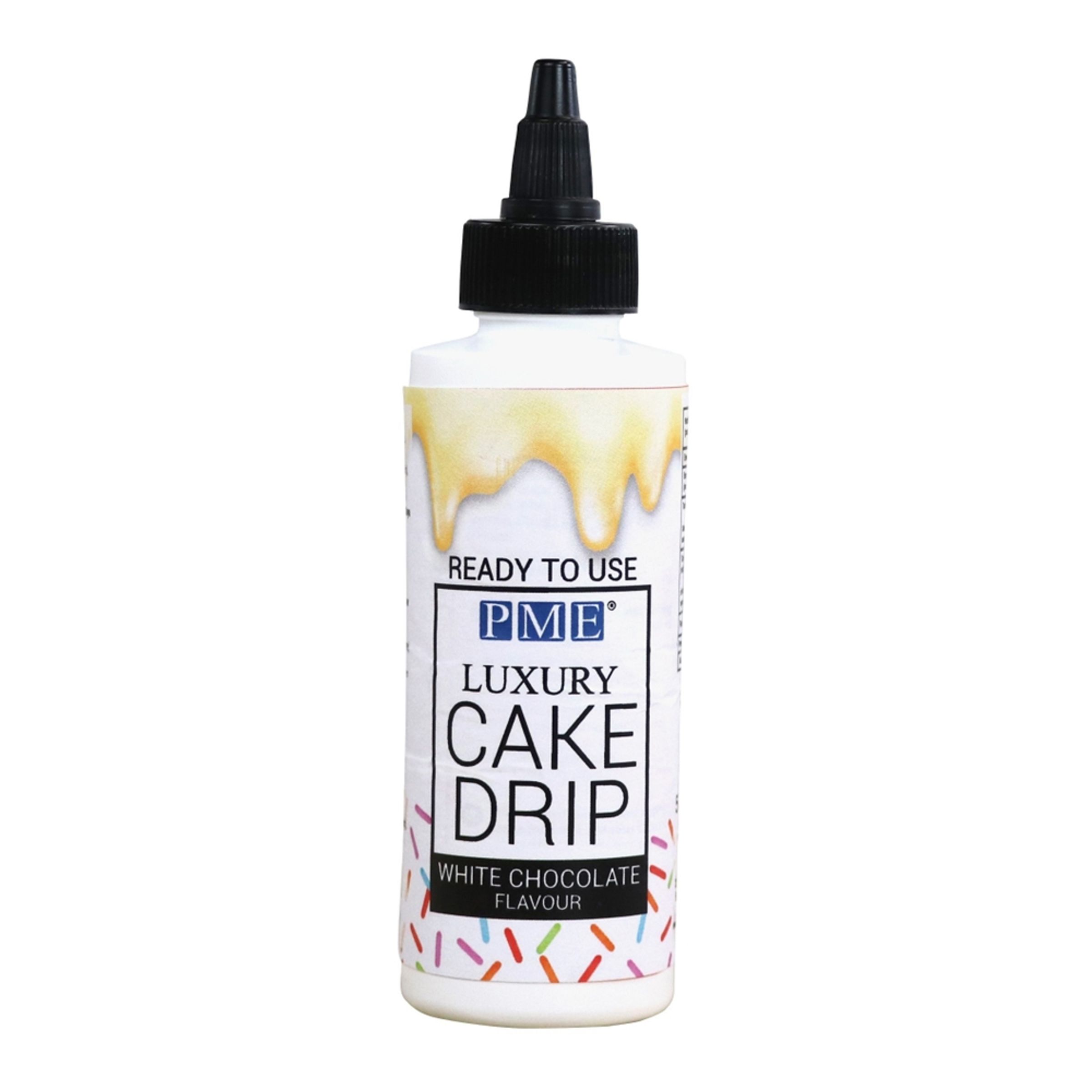 PME Cake Drip levereras i flaska á 150 ml och finns i ett gäng olika varianter. Välj mellan mjölkchoklad, vitchoklad, rosa eller blå – samtliga med en rik och lyxig smak av choklad. Att dekorera tårtan eller bakelsen med en Cake Drip är både enkelt, gott, roligt och stressfritt!