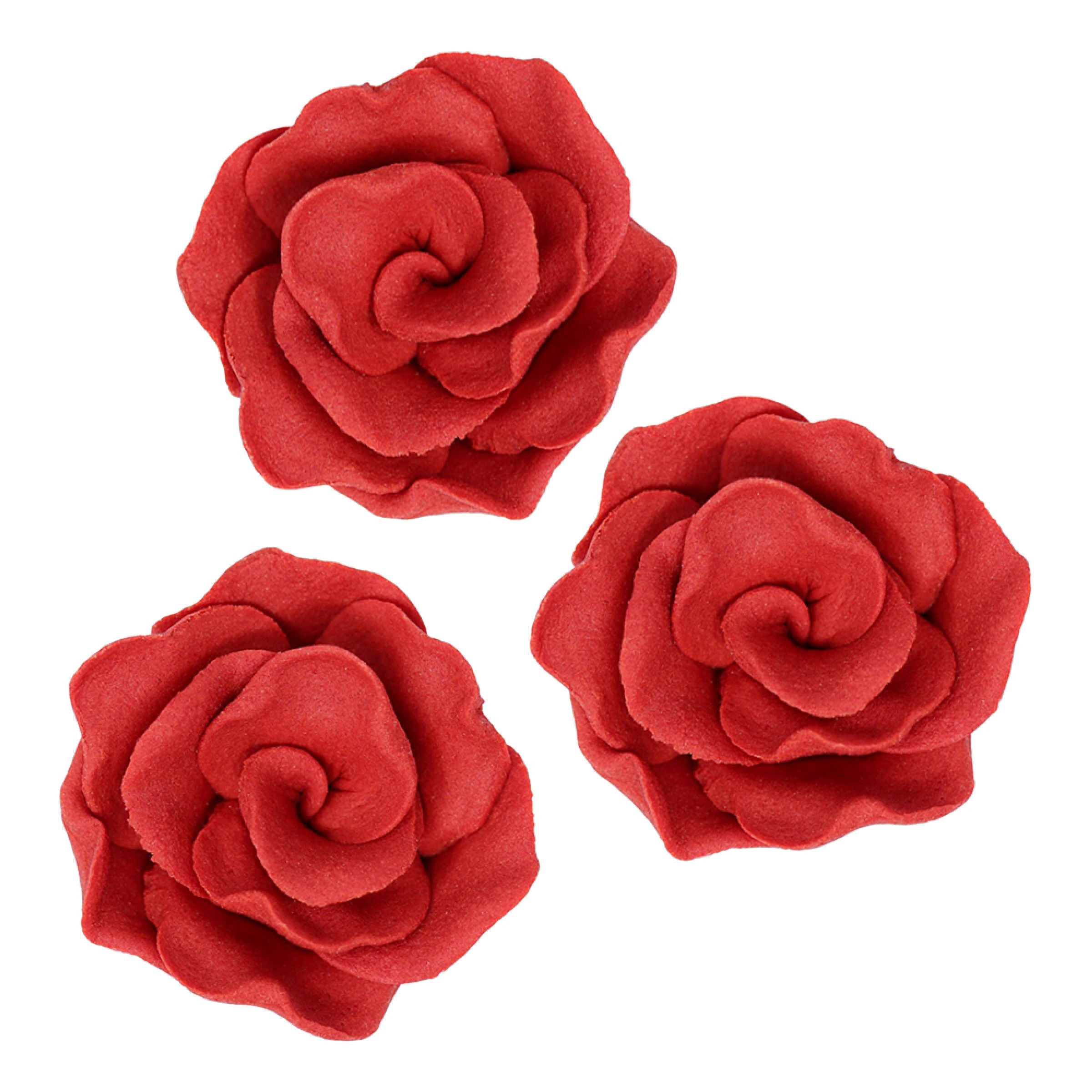 PME Sockerrosor Röda innehåller 36 stycken röda sockerrosor som mäter Ø4cm.