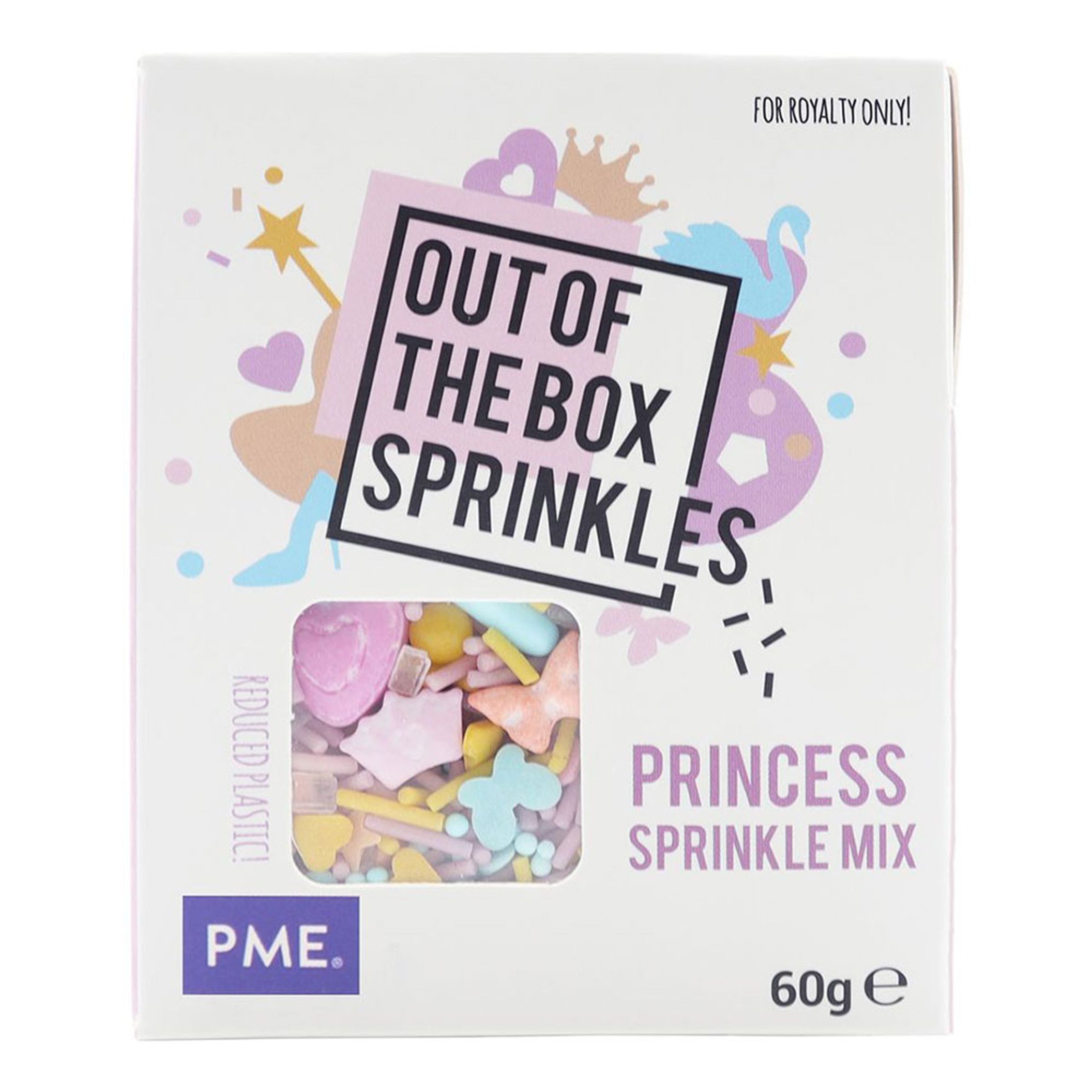 PME Strösselmix Princess är strössel i form av tiaror, hjärtan, fjärilar och mycket mer, i olika färger. Perfekt till såväl födelsedagskalaset, babyshower eller bara för skojs skull!