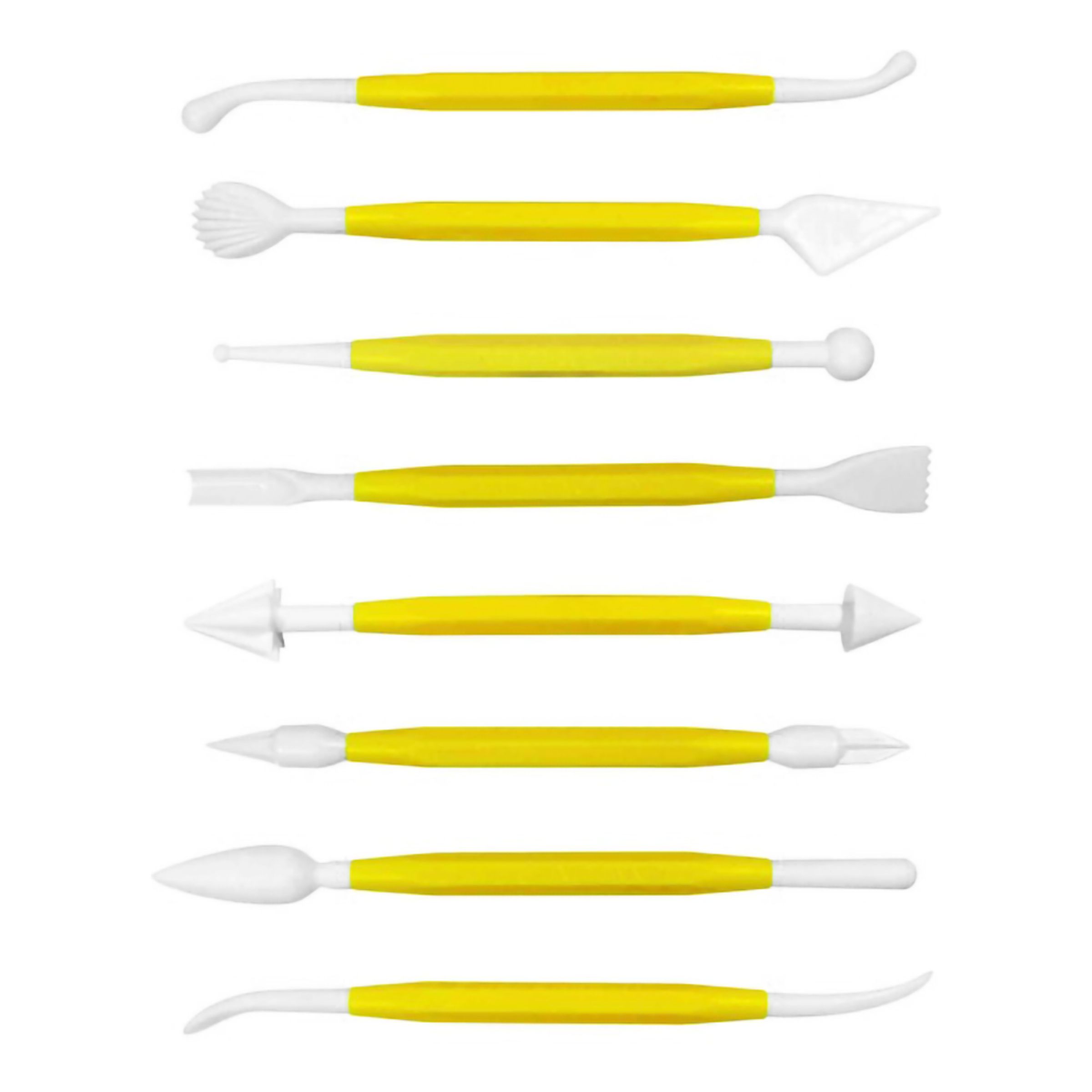 PME Verktyg för Tårtskulpturer inkluderar åtta olika verktyg som passar utmärkt för att skapa alla möjliga storters mönster och detaljer på tårtor, bakverk och skulpturer, för nybörjare som proffs. Karva, räffla, skär, mönstra och pricka på allt från sockerpasta och glasyr till deg eller till och med frukt!