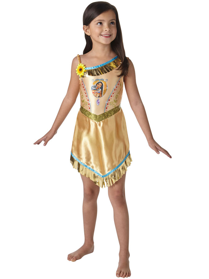 Ut på äventyr som Pocahontas med tvättbjörnen Meeke i den här snygga Pocahontas klänningen, som är en maskeraddräkt för barn! Få lika fina kläder som indianen Pocahontas, samtidigt som du blir redo med utklädnad inför nästa maskerad. Komplettera din Pocahontas dräkt med lång svart peruk för en fulländad Pocahontas kostym!