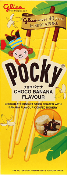 Pocky, vårt favoritgodis från Asien! Två läckra smaker har här kombinerats till ett sött snack. Pocky Chocolate Banana kombinerar den lätta chokladkexpinnen med en len kräm med smak av banan och är det perfekta snacket för att förgylla din dag…eller en väns! Det är ett mellanmål utan kladd packat med en fruktig god smak.