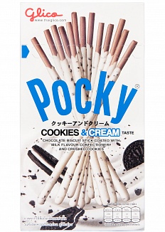 Pocky har tagit den klassiska smaken cookies & cream och förvandlat det till en utsökt Pocky-smak. Pocky Cookies & Cream har den perfekta kombinationen av krämigt och krispigt, något som alla åldrar uppskattar. Passar till alla tillfällen, filmkvällen som picknicken! Vi får tacka Japan för dessa delikata godispinnar!