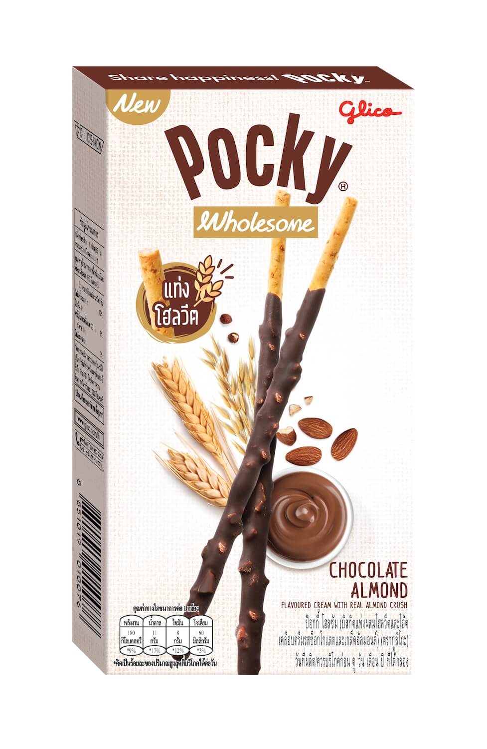 Pocky, vårt favoritgodis från Asien! Dessa fullkornspinnar är doppade i en chokladkräm med mandelsmak som innehåller krossade mandlar för extra krisp! Fantastiskt goda och passar utmärkt till utflykten som hemmakvällen!