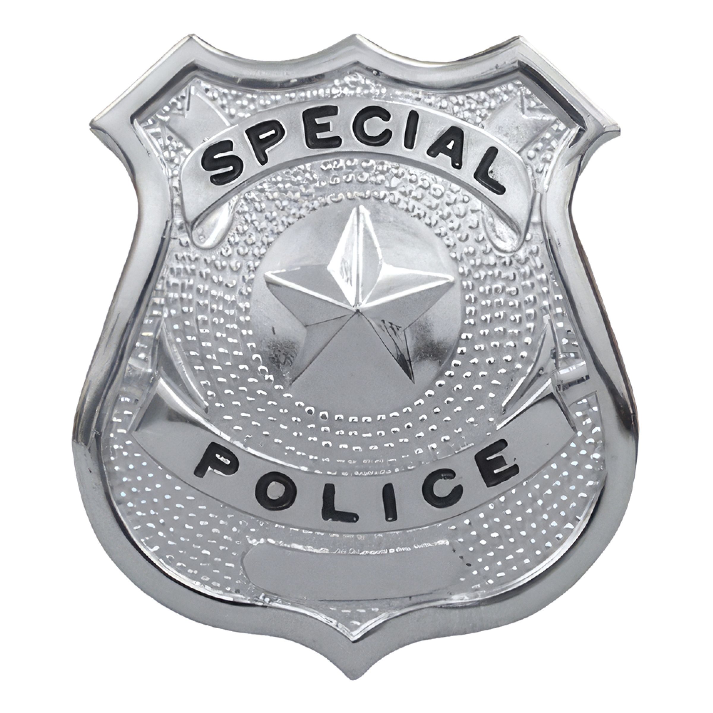 Realistisk polisbricka i metall med texten "Special Police". Storlek: 6,5 cm.