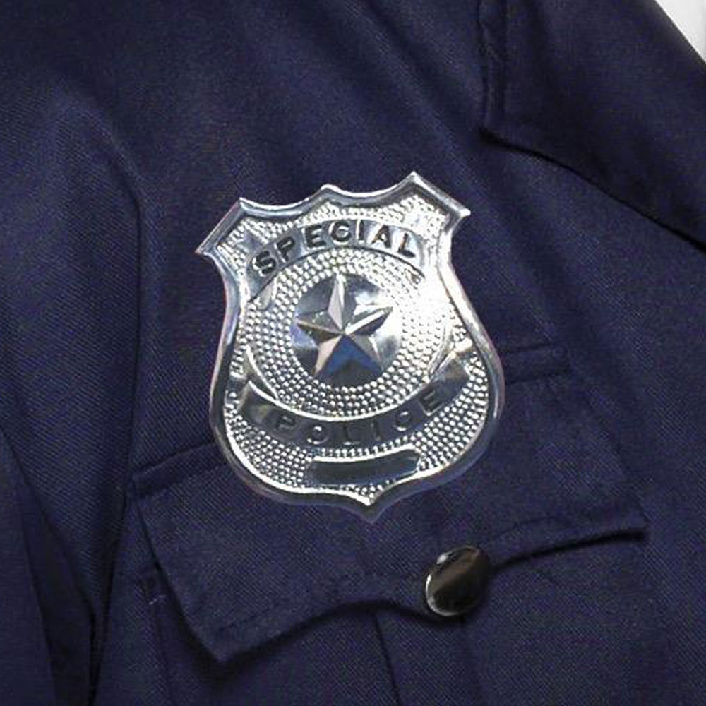 Polisbricka Special Police omfattar en silvrig polisbricka av metall med stjärnmotiv och texten "Special Police". Brickan är ca 5,5 cm bred och 6 cm lång.