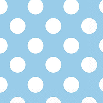 Festligt prickiga kaffeservetter i ljusblått som gör vilket kalas som helst riktigt fint! Duka fram dessa pappersservetter snyggt intill varje tallrik eller gör fina servettvikningar av dem. Den ljusblåa färgen gör dem även till perfekta servetter för alla ljusblåa dukningar så som en babyshower, dop eller barnkalas dukning.