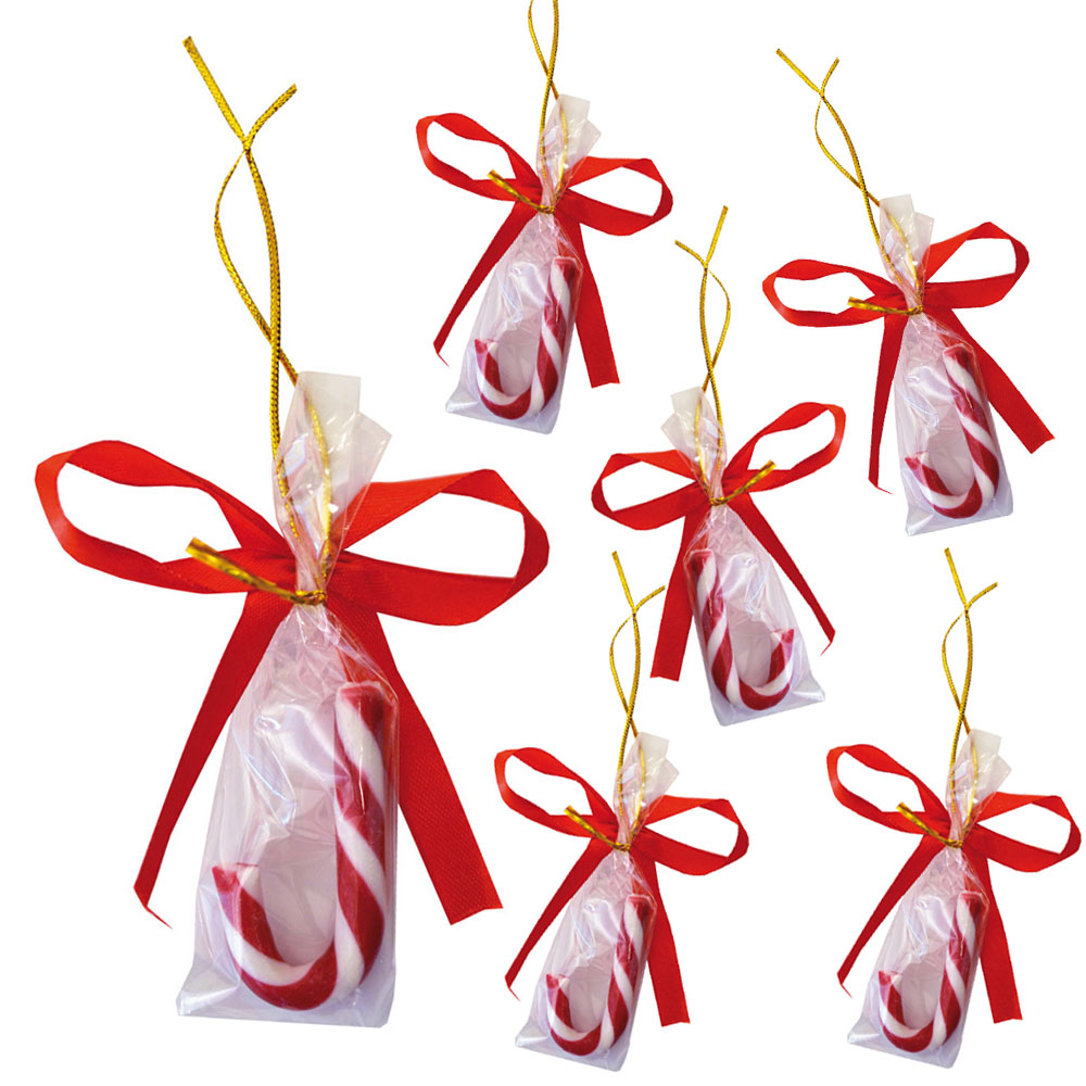 Sockersöta polkagriskäppar med röda rosetter och guldiga snören som blir det perfekta julpyntet för alla som gillar detta klassiska julgodis. Sprid en härlig julkänsla i ditt hem med dessa polkagrisar hängandes i granen, i ett fönster eller på något annat passande ställe.