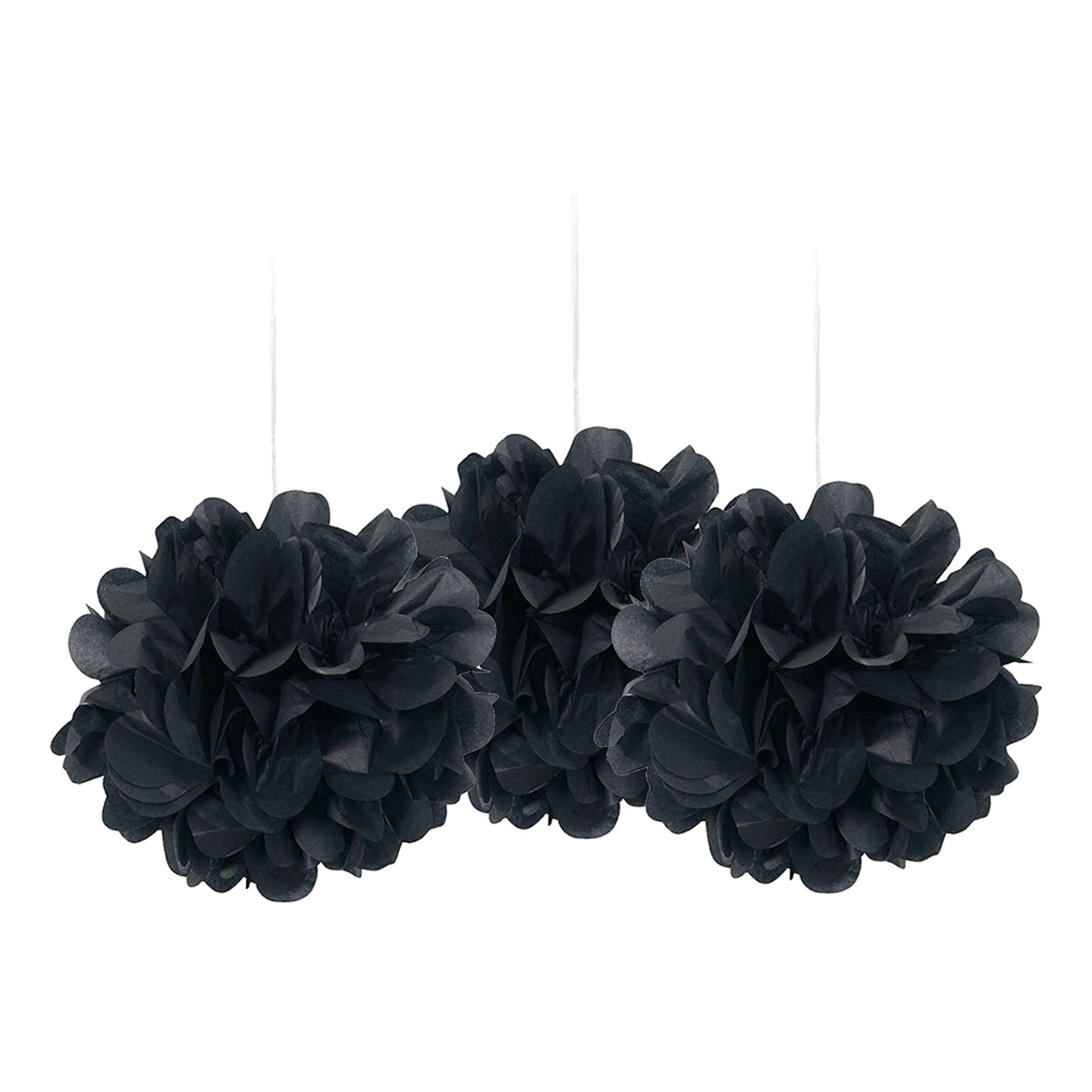 Letar du efter något coolt och annorlunda till middagen, festen eller mottagningen? Planerar du kanske nyårsfesten och vill liva upp en annars vardaglig atmosfär i hemmet eller festlokalen? Dessa pompoms i mörk, kolsvart färg är som små, mystiska meteoriter som far igenom och förvandlar hela rummet till en rymdisk och spännande värld.