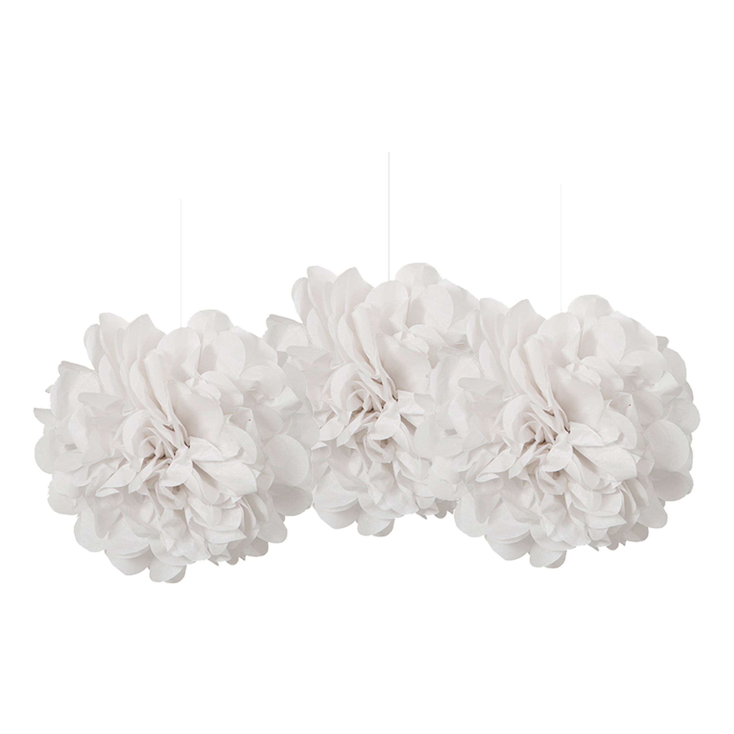 Dessa eleganta, subtila pompoms i somrig, vit färg har makten att totalt omvandla ett vanligt rum till en harmonisk äng av vitsippor. Planerar du middagen eller festen och vill att vardagsrummet ska osa lite mer magi och festlighet? Dessa pompoms gör garanterat jobbet. Gör sig lika bra till sommarfesten som till vinterfesten. Eller varför inte låta dem dekorera hela bröllopsfesten?