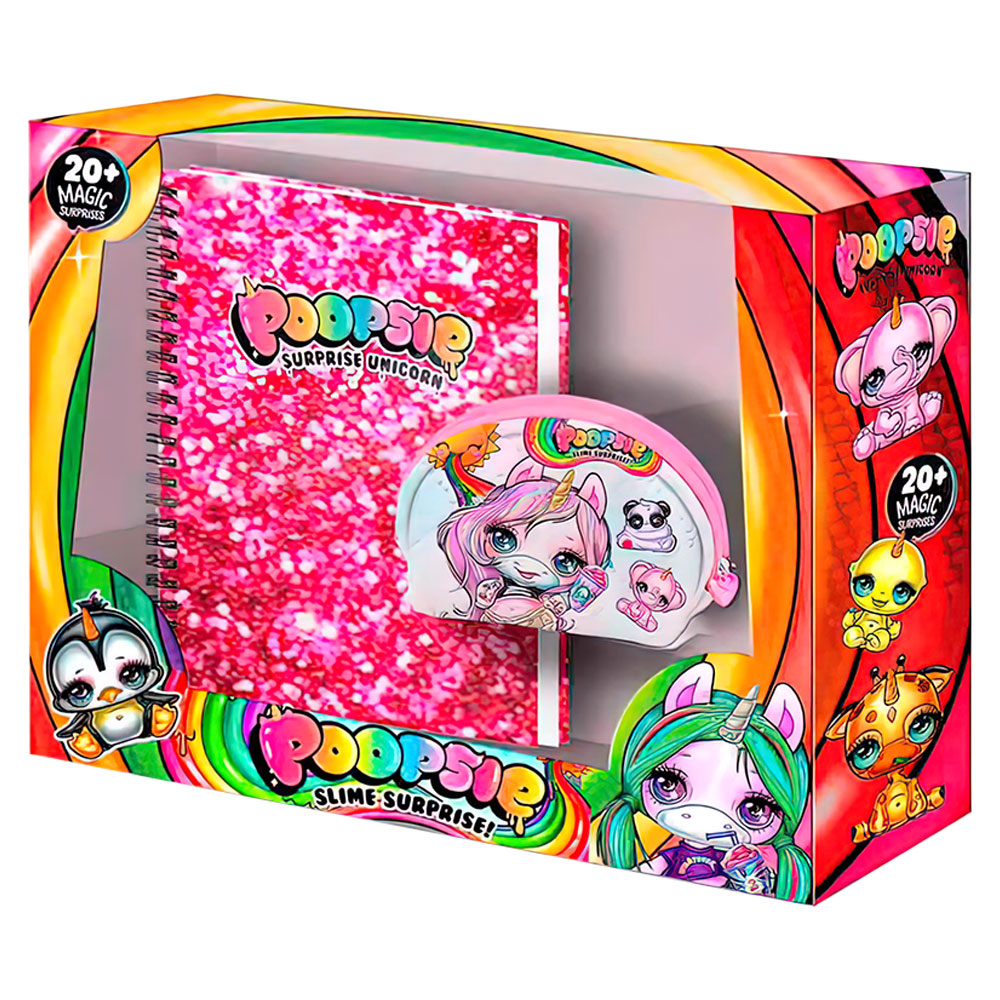 Härligt Poopsie rainbow slime surprise kit med fin portmonnä och snygg skrivbok, perfekt set för alla poopsieslime unicorn fans som vill ha fina saker med en tuff och populär enhörning, med plånbok och anteckningsbok i härliga och glansiga färger får ditt barn superfina Poopsie prylar som garanterat uppskattas, Poopsie barnplånbok och anteckningsblock gör ditt barn redo för nya äventyr fulla av magi.