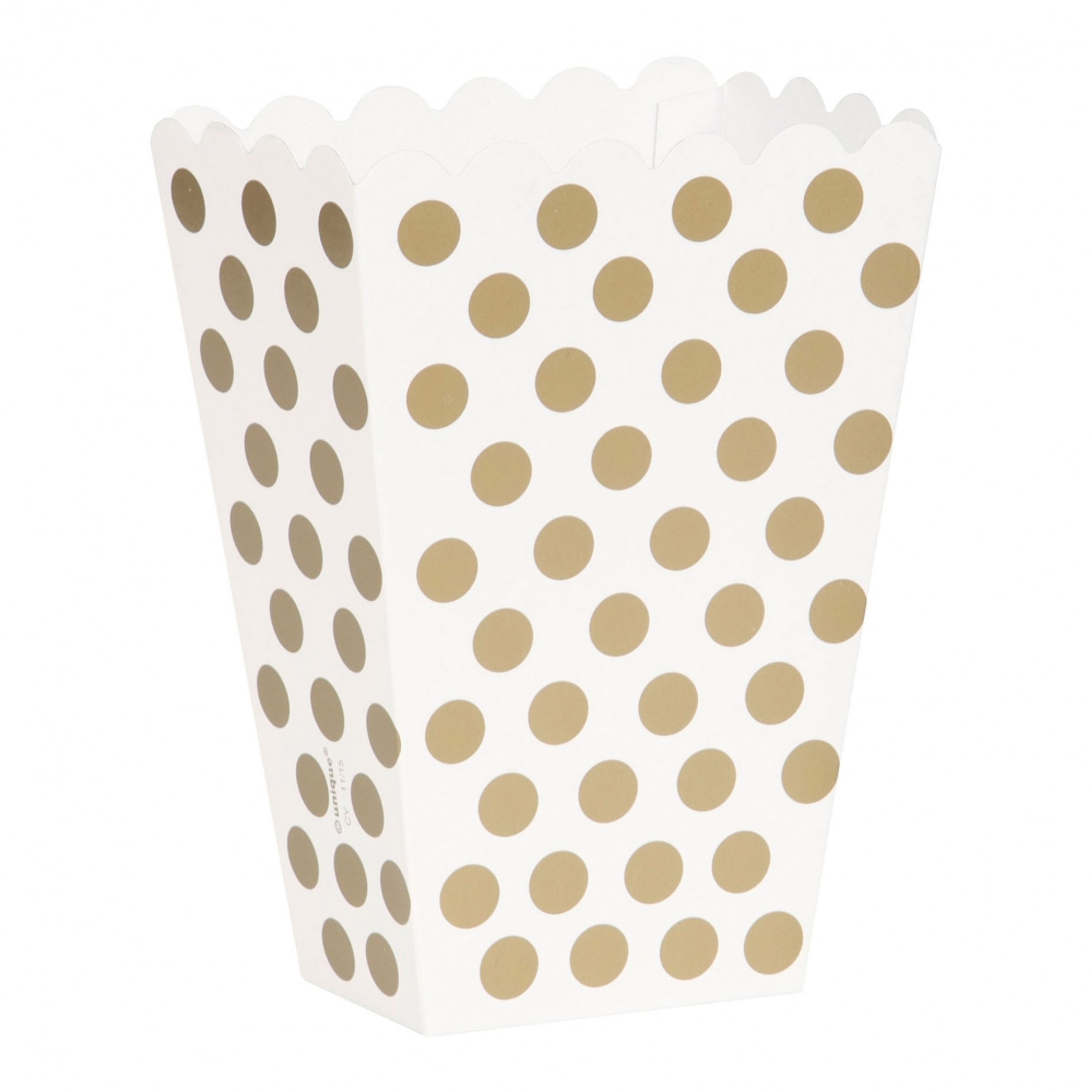 Popcornbägare Guld Prickig mäter ca 13 cm höga och säljes i 8-pack.
