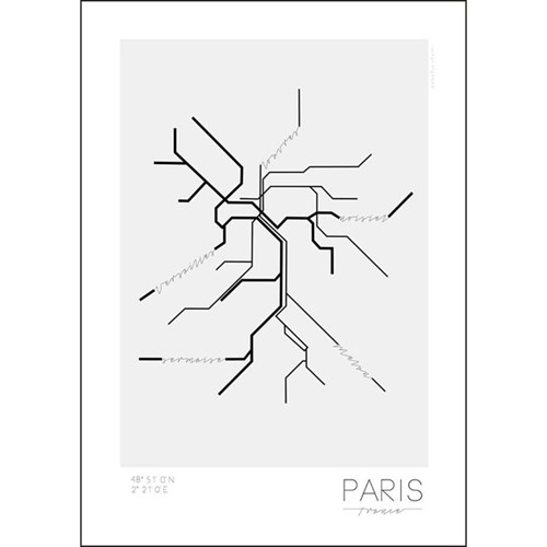 Stilrena, svartvita posters av svenska designduon Linn Johansson och Karolina Gullberg. Motiven är inspirerade av olika städers tunnelbanesystem. Som detaljer har populära områden och stadens geografiska koordination märkts ut på respektive poster.