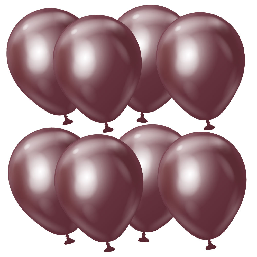 Premium Små Latexballonger Chrome Burgundy omfattar små, metalliskt mörkröda latexballonger av högsta kvalitet och en extra lång hals. Ballongen är gjord av mjuk och följsam latex vilket gör det enklare att skapa olika dekorationer. Latexballongen har en diameter på 13 cm.