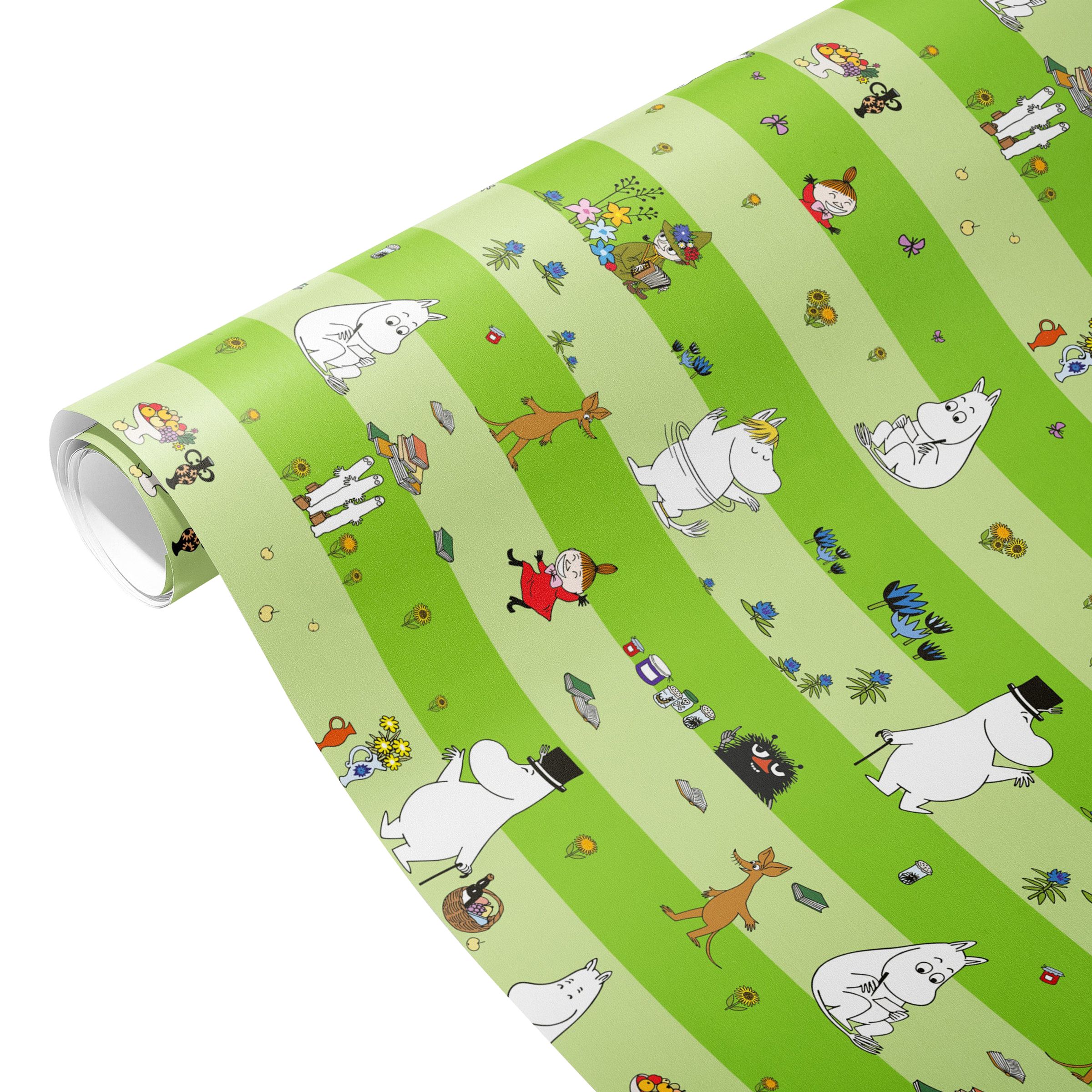 Presentpapper Mumin finns i fyra olika färger som alla kommer med motiv av Tove Janssons älskade Mumin. Rullen är 70 centimeter bred och 4 meter lång. Ett måste till Mumin-kalaset!